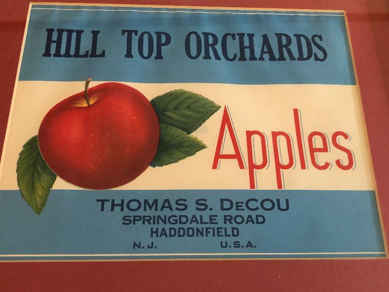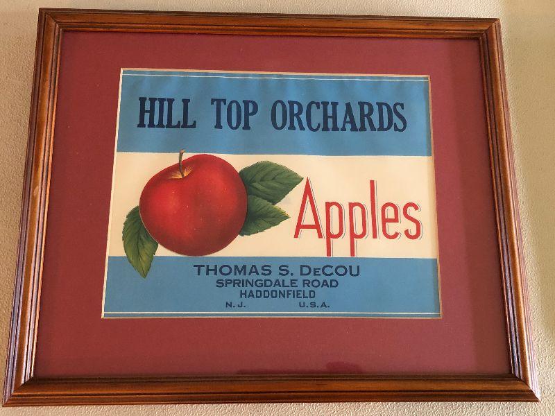 L179: Hill Top Orchards Haddonfield Framed Vintage Label