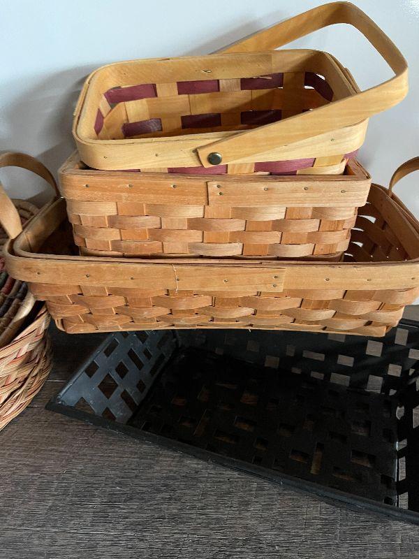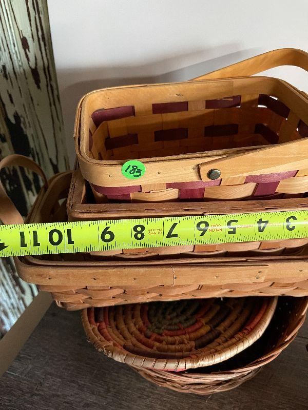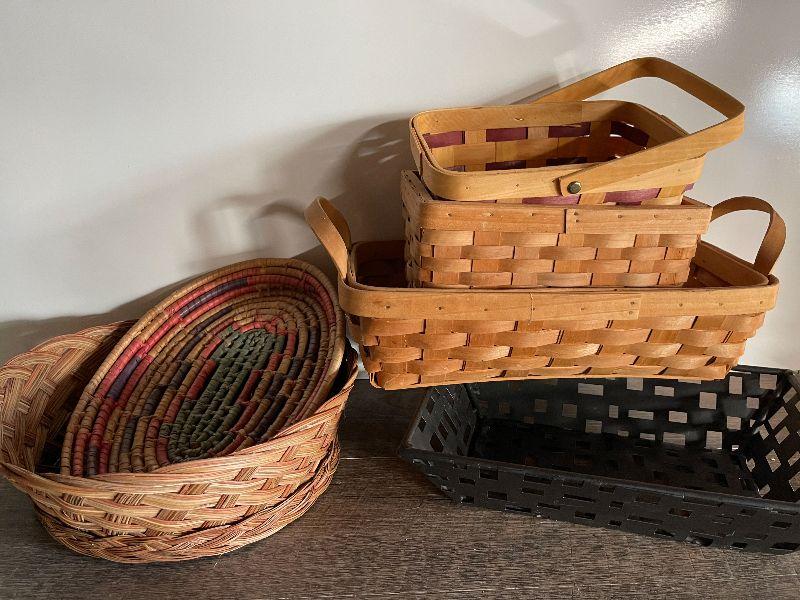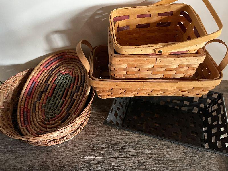 Baskets in various size and colors. Please see pictures for condition and measurements if taken. All items are sold as found and if furniture, you will need to be able to move yourself. Thank you for looking and have fun bidding! As always, thank you for being a Treasure Me Hunter!