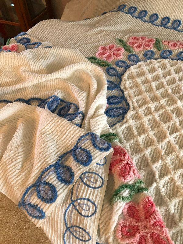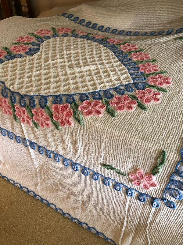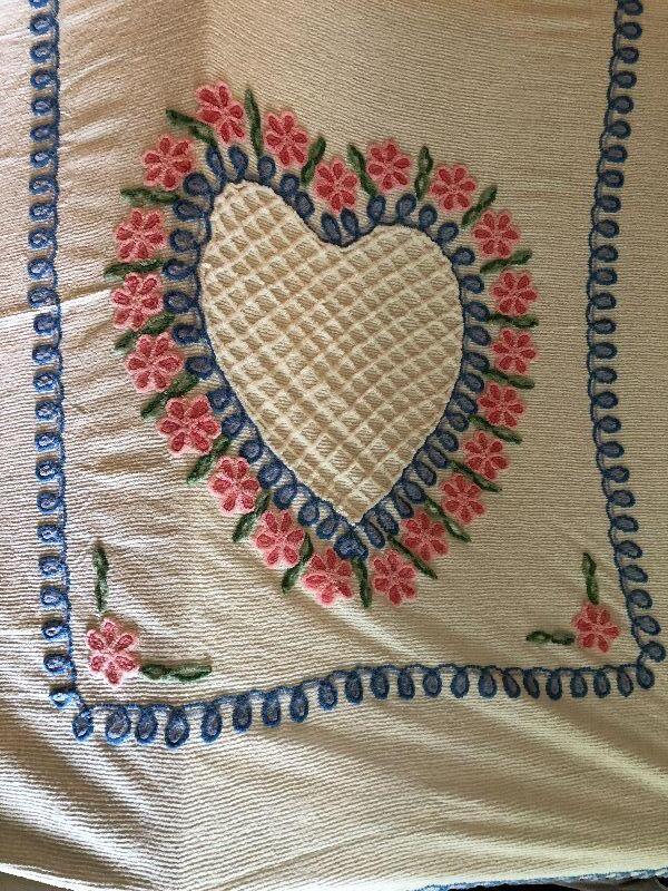 L184: Shabby Chic Chenille Heart Full Bedspread
