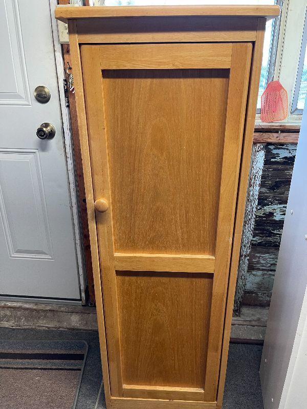 Nice storage Cabinet for any room in the house. Please see pictures for condition and measurements if taken. All items are sold as found and if furniture, you will need to be able to move yourself. Thank you for looking and have fun bidding! As always, thank you for being a Treasure Me Hunter!