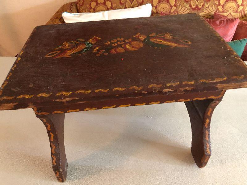 L186: Vintage Painted Wood Stool (Layers of paint)