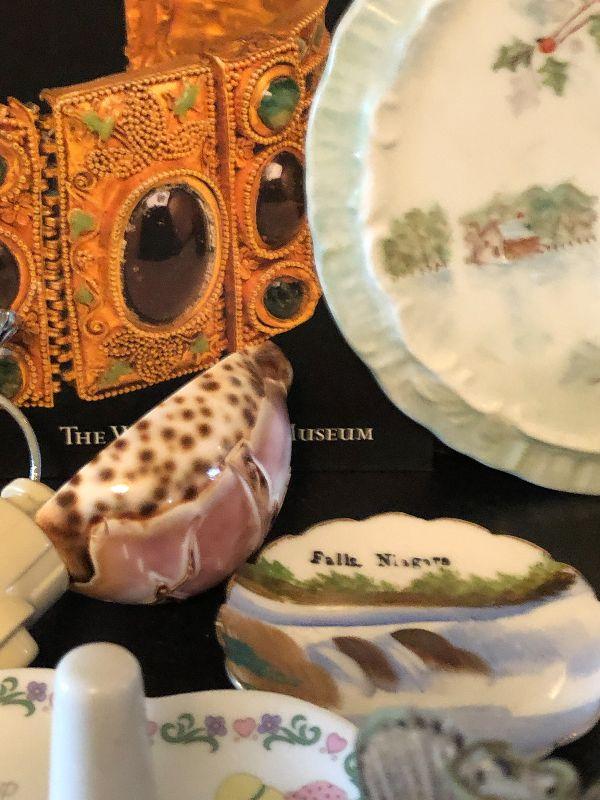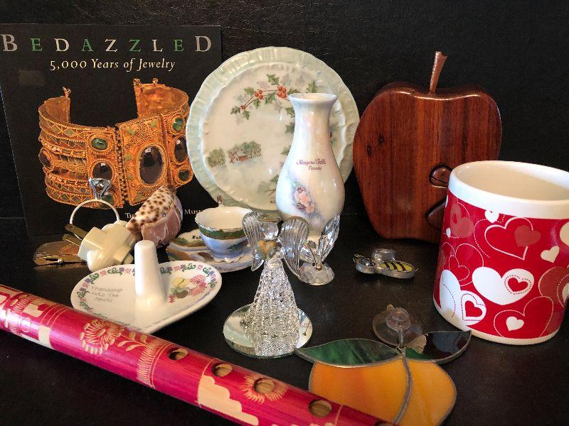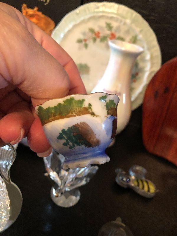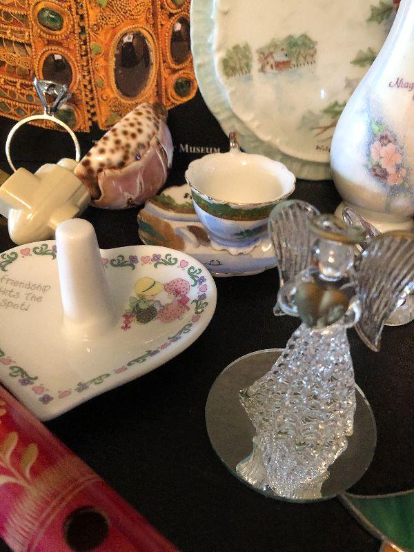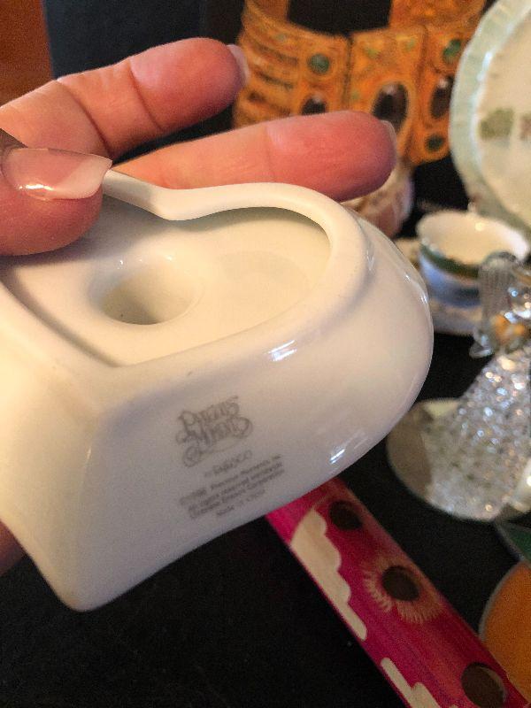 This is a nice lot of collectible items from a Precious Moments ring holder to a wood carved apple with caterpillar. Please see all pictures for contents of the lot, condition of the items in the lot, and measurements if taken. Thank you for looking and have fun bidding.