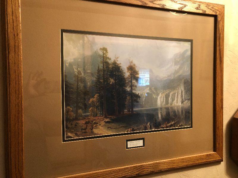 Very nice wall art print framed and matted. Please see all pictures for contents of the lot, condition of the items in the lot, and measurements if taken. Thank you for looking and have fun bidding.