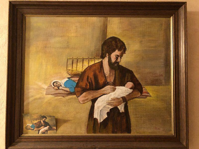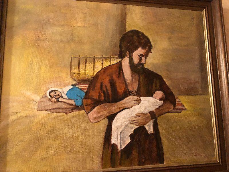 Unique painting in that you never see Joseph holding the baby! Please see all pictures for contents of the lot, condition of the items in the lot, and measurements if taken. Thank you for looking and have fun bidding.