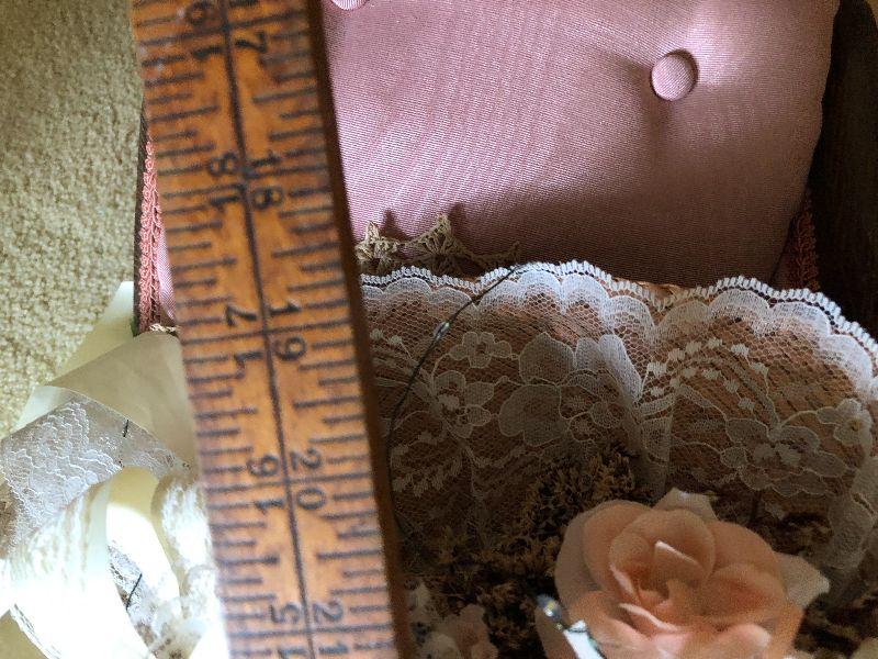 The doll chaise is a perfect size, and comes with other household decorations. Please see all pictures for contents of the lot, condition of the items in the lot, and measurements if taken. Thank you for looking and have fun bidding.