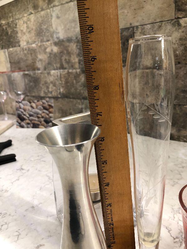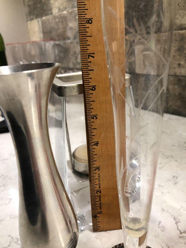 Sterling Silver bud vase. Lenox kirk stieff pewter. Weighted etched silver bud vase. Please see all pictures for condition and measurements if taken. All items are sold as found and if furniture, you will need to be able to move yourself. Thank you for looking and have fun bidding! As always, thank you for being a Treasure Me Hunter!
