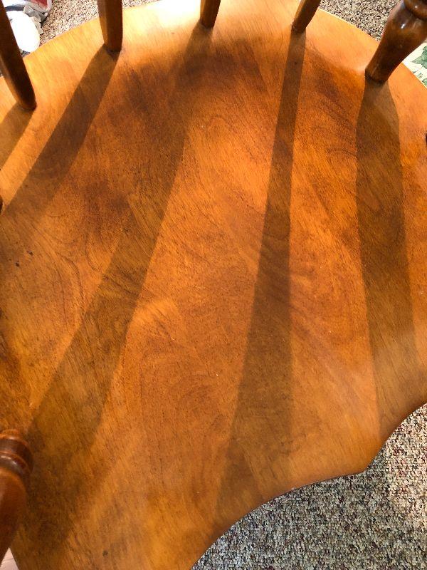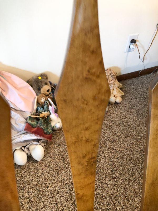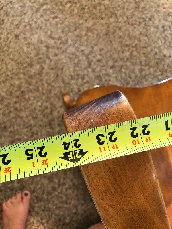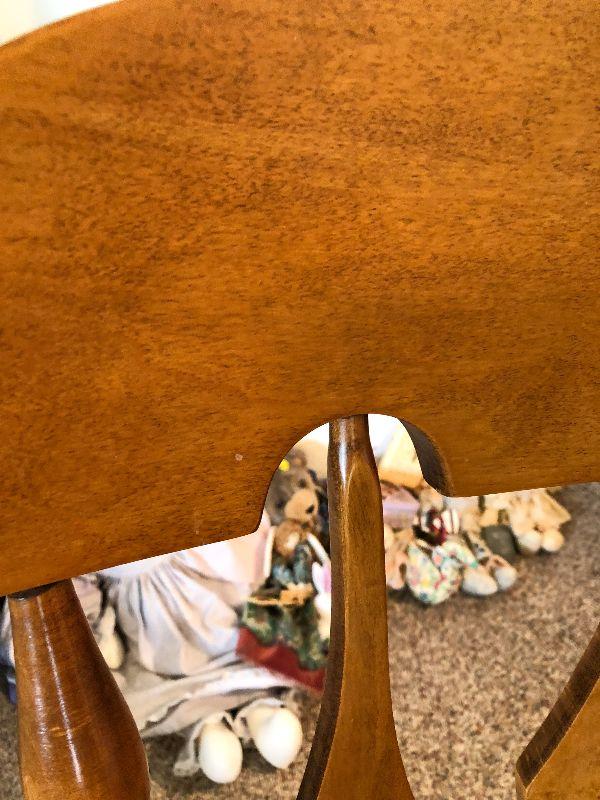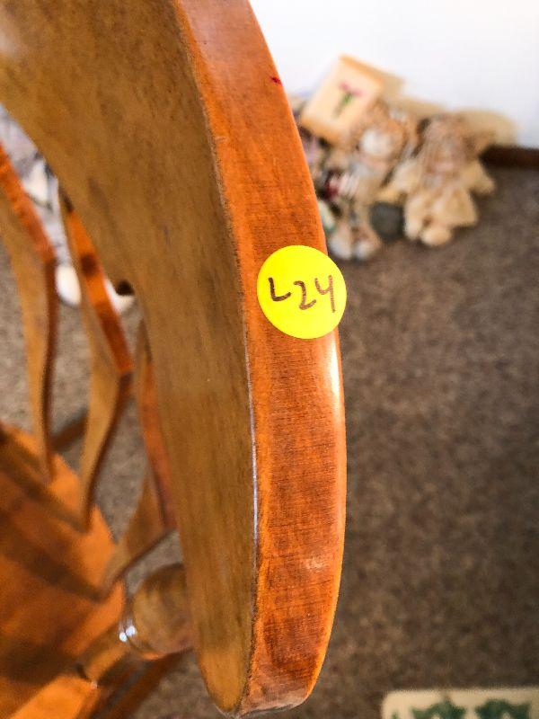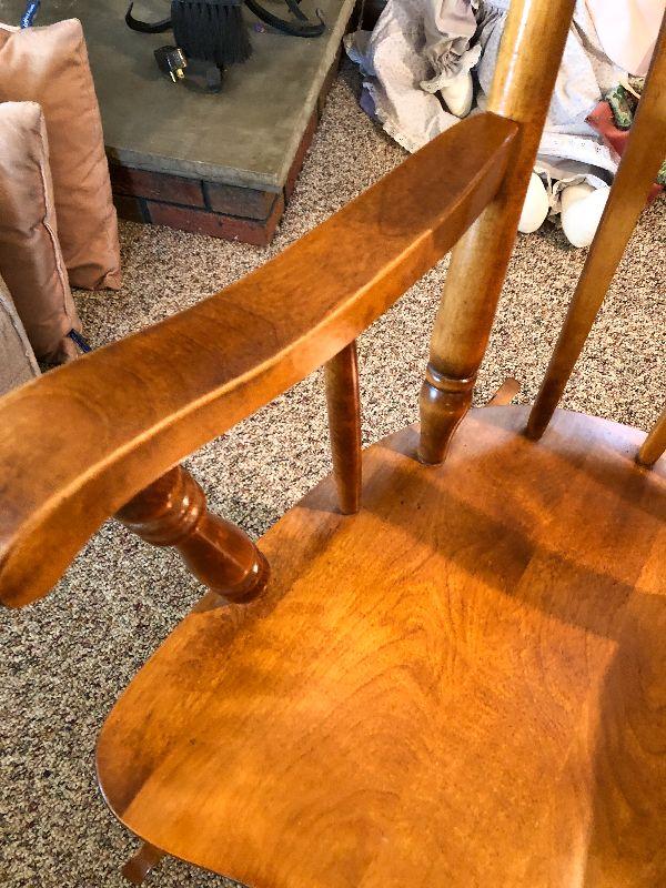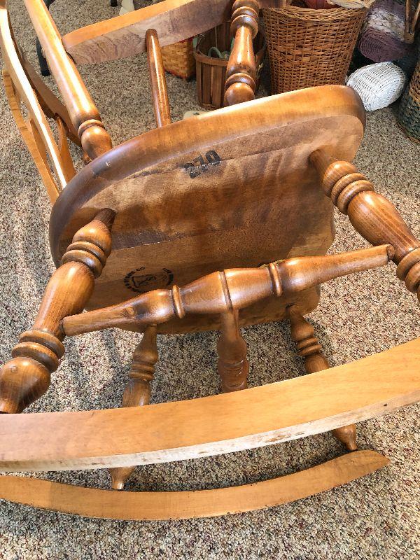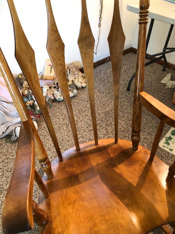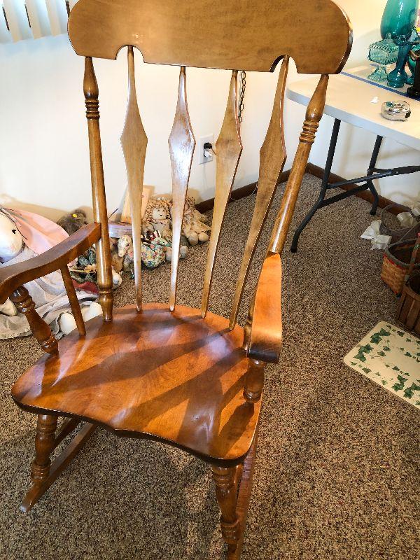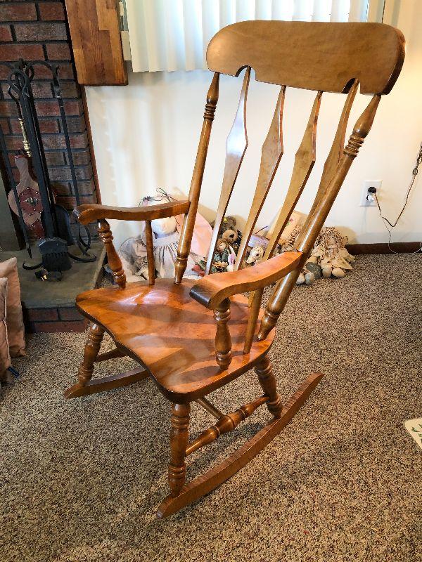 This is a gorgeous, solid rocking chair made in the USA. Please see all pictures for exact contents of the lot, condition of the items, and if measurements if taken. Thank you for looking and have fun bidding.