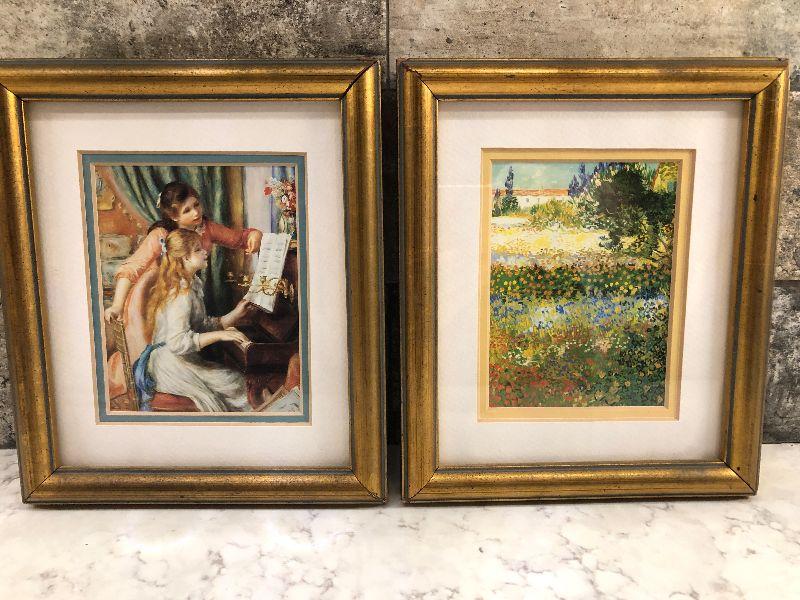 Two small wall art prints. Please see all pictures for condition and measurements if taken. All items are sold as found and if furniture, you will need to be able to move yourself. Thank you for looking and have fun bidding! As always, thank you for being a Treasure Me Hunter!