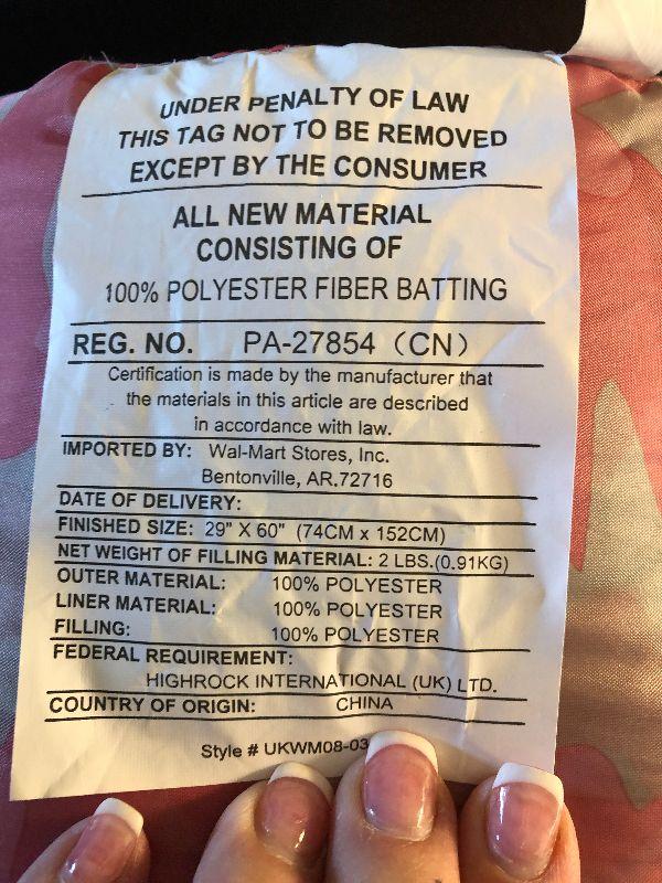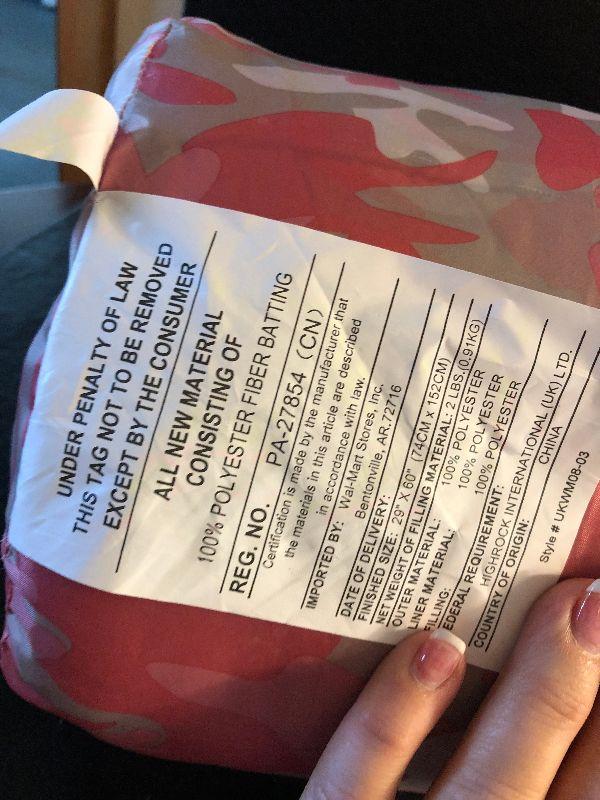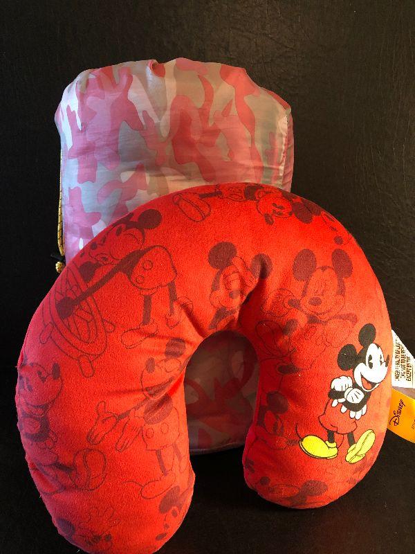 Pink camo print sleeping bag. Mickey pillow. Please see all pictures for contents of the lot, the condition of items in the lot, and measurements of the items if taken. Thank you for looking and have fun bidding.