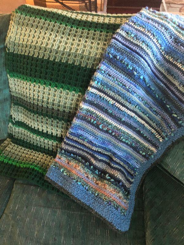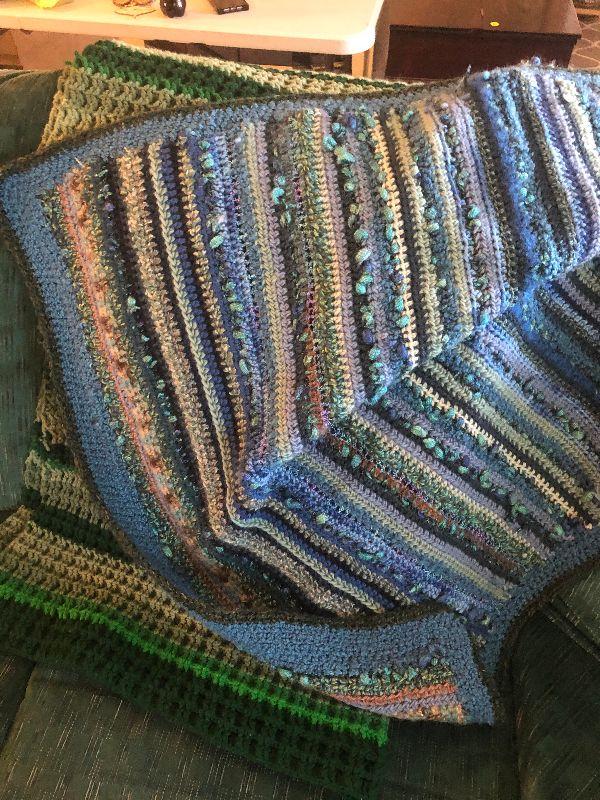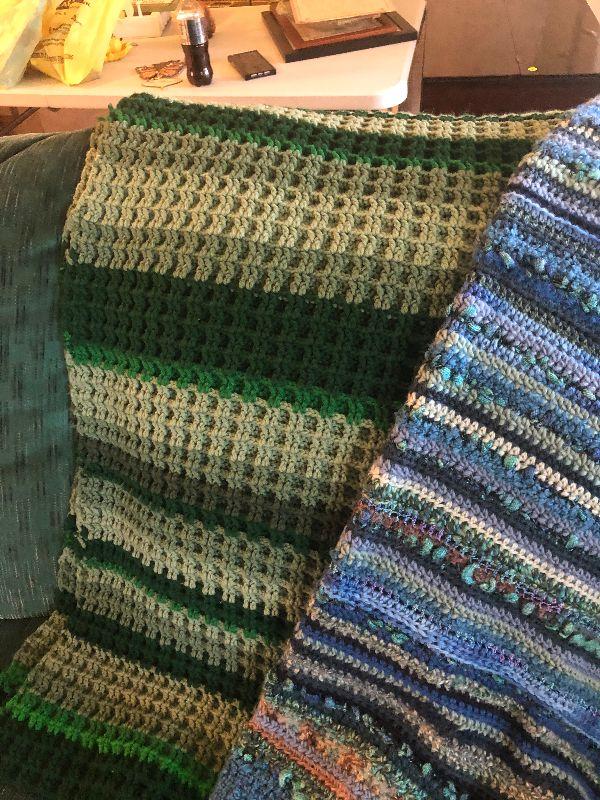 Soft handmade throws. Pictures say it best! Please see all pictures for exact contents of the lot, condition and measurements when needed. Thank you for looking and have fun bidding!