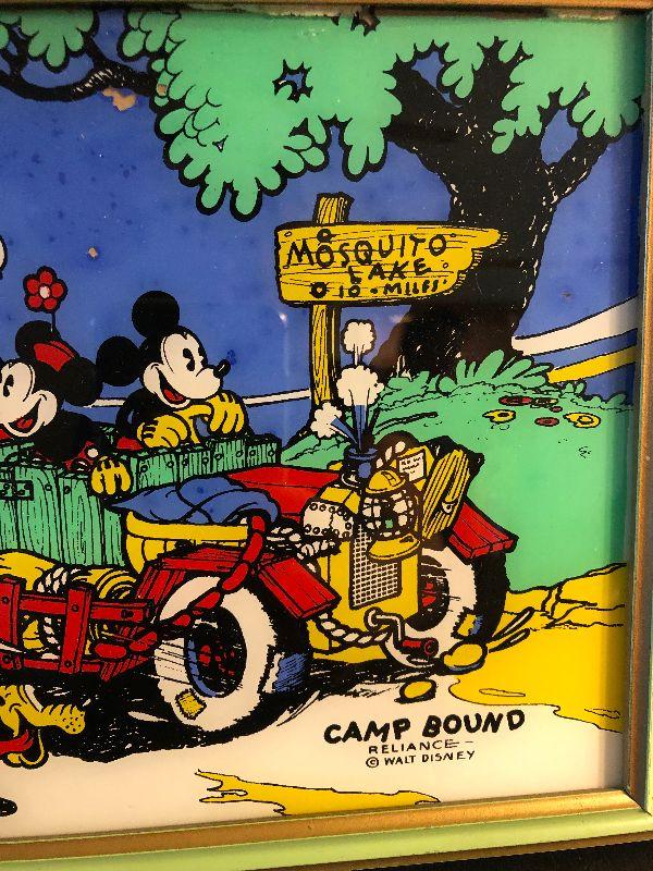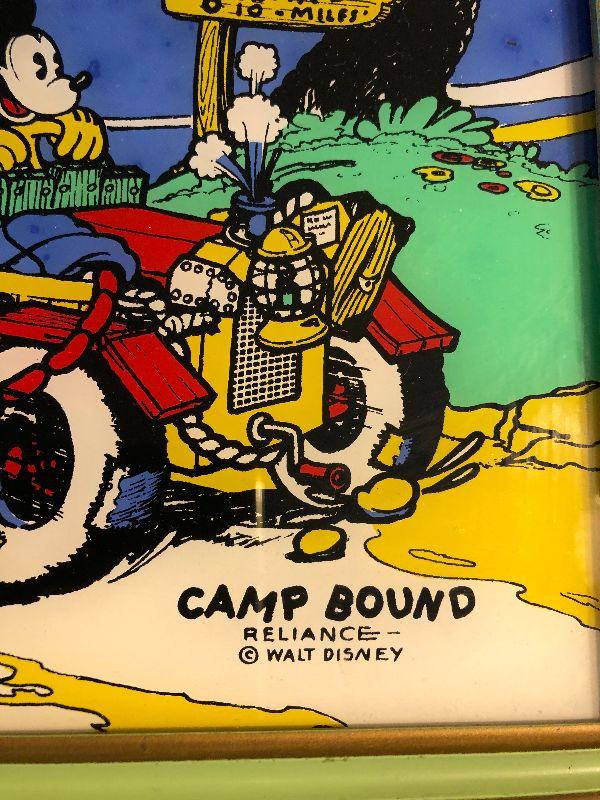 Vintage framed print "Camp Bound" in colored enamels right on the glass. Please see all pictures for contents of the lot, the condition of items in the lot, and measurements of the items if taken. Thank you for looking and have fun bidding.
