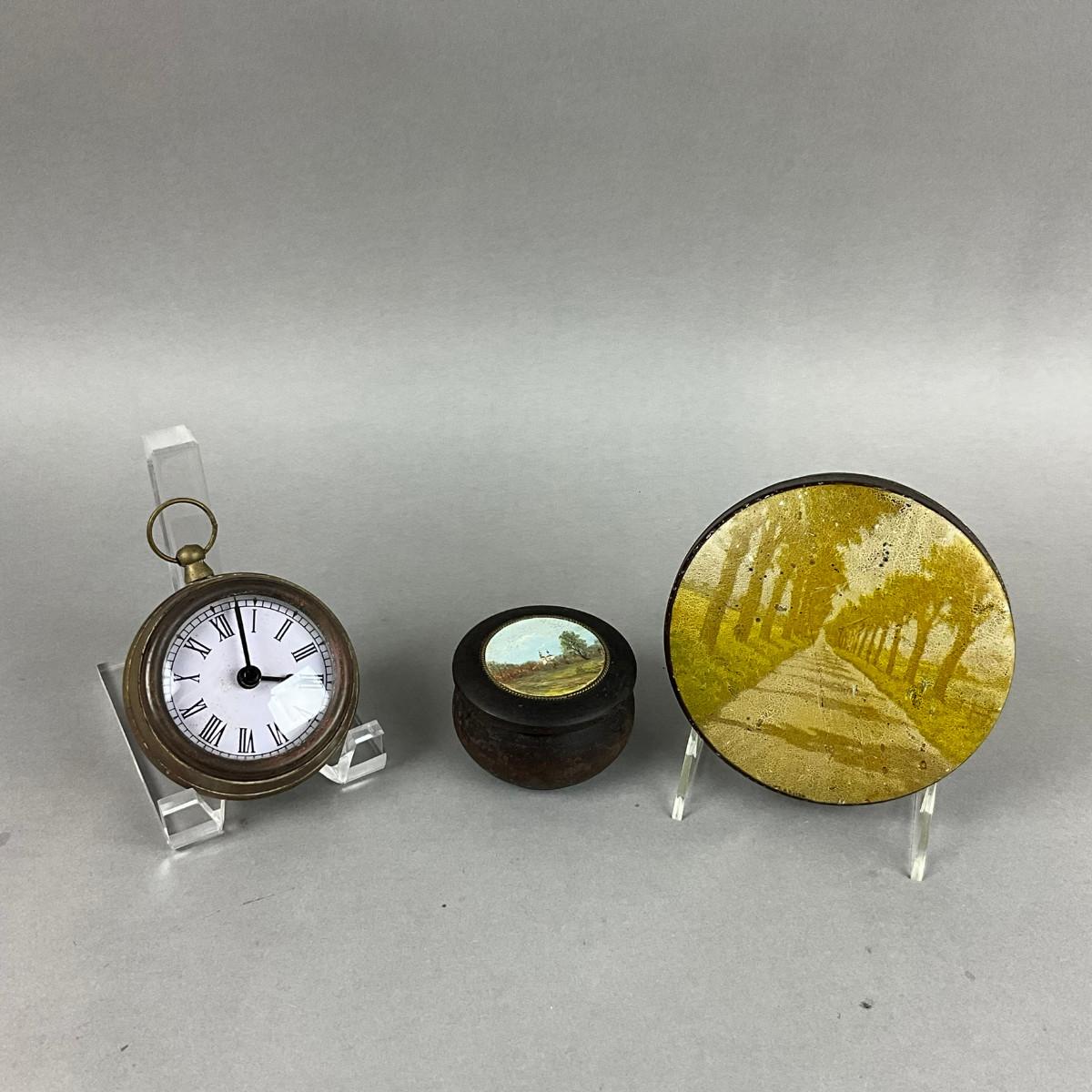 L371 Antique Tin, Painted Box & Vintage Desk Clock