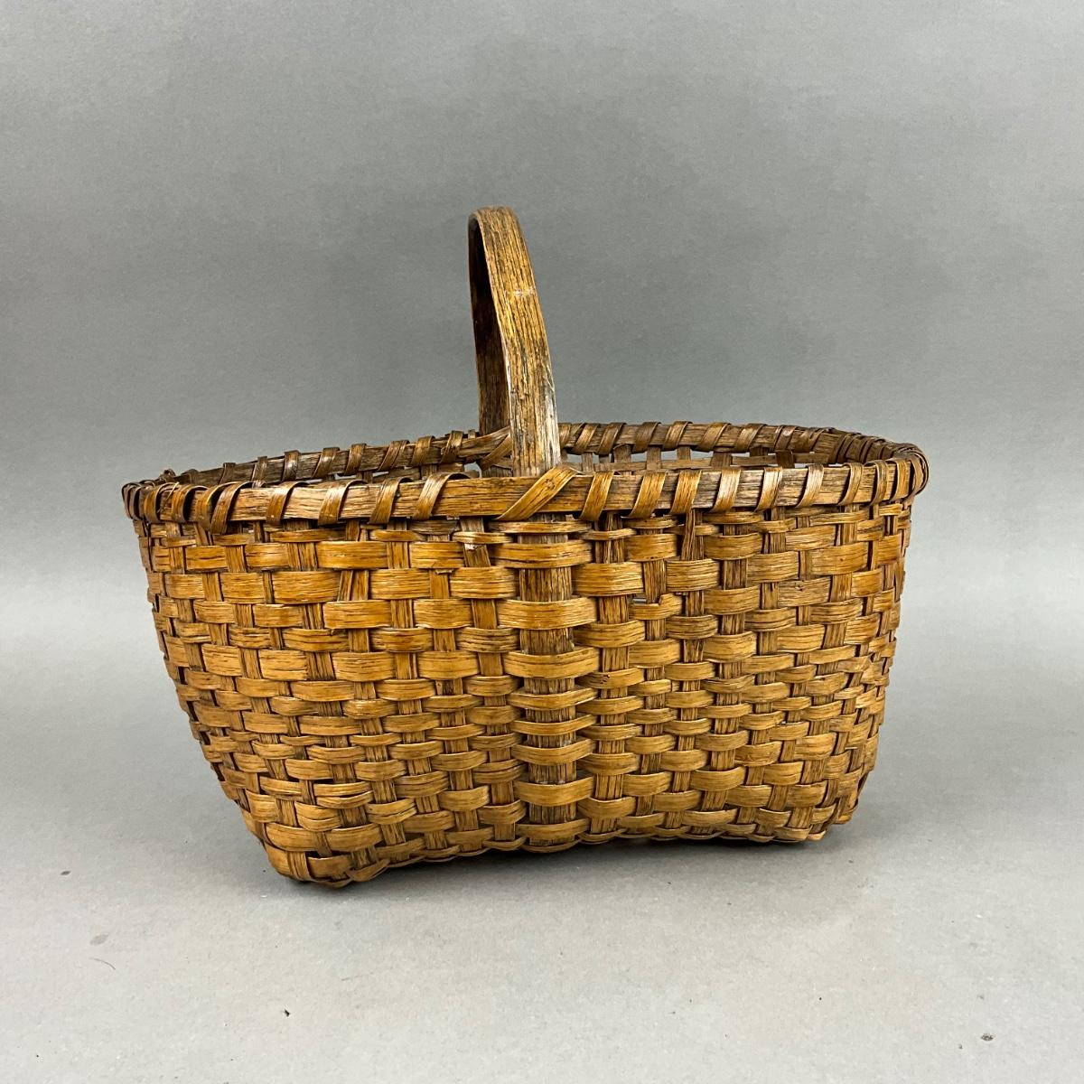 L395 Primitive Oak Split Gathering Basket and Wicker Wash Basket