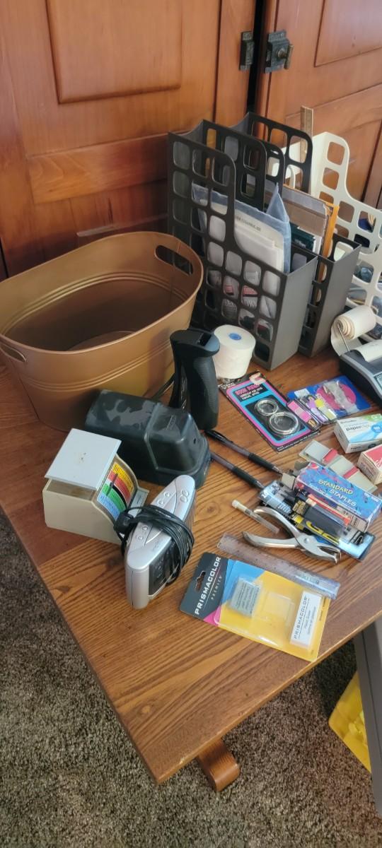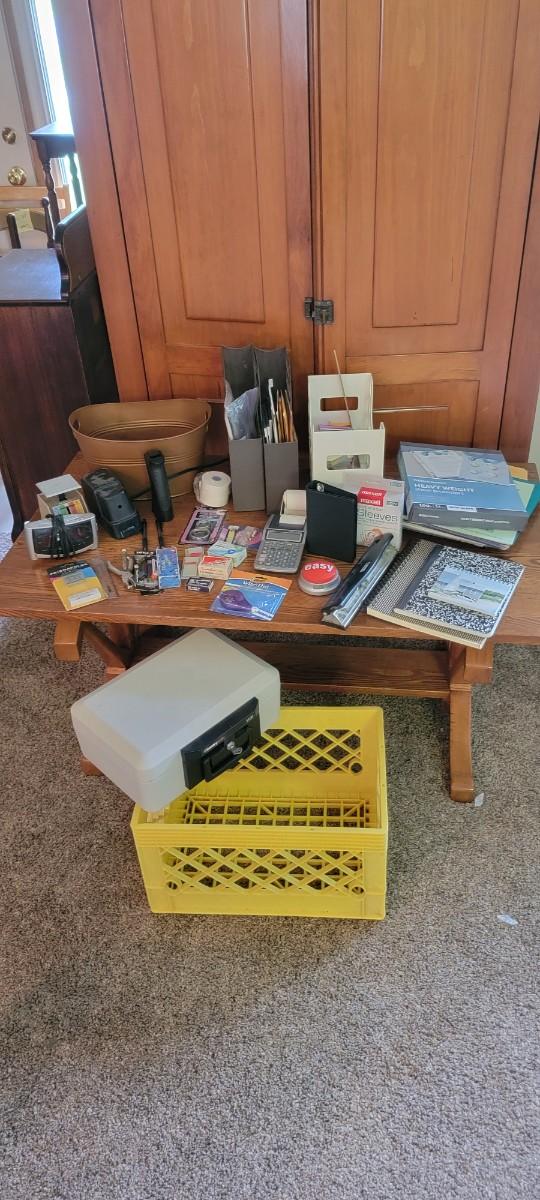 Miscellaneous office items plus Sentry safe. Coffe table and cabinet not included