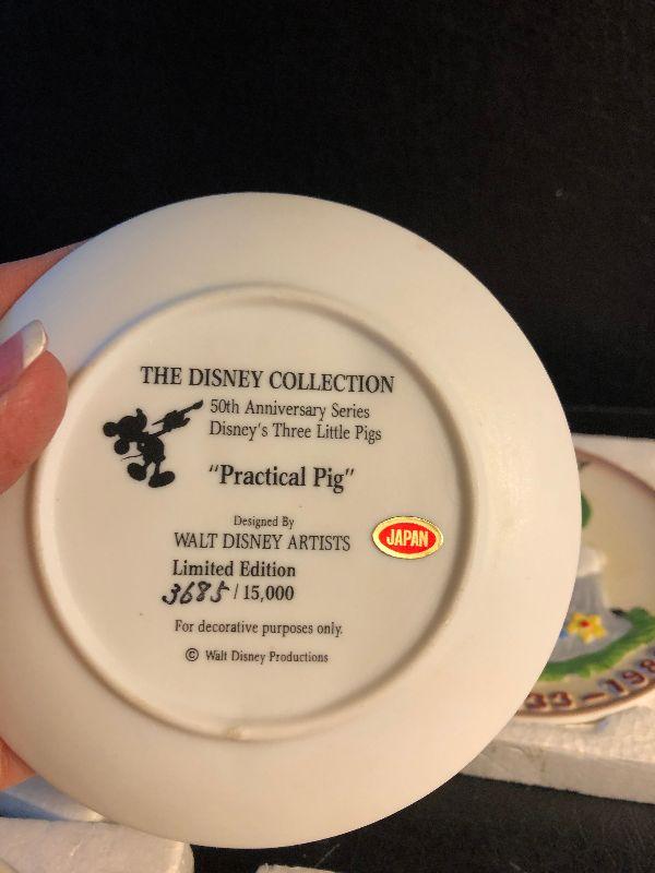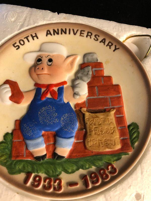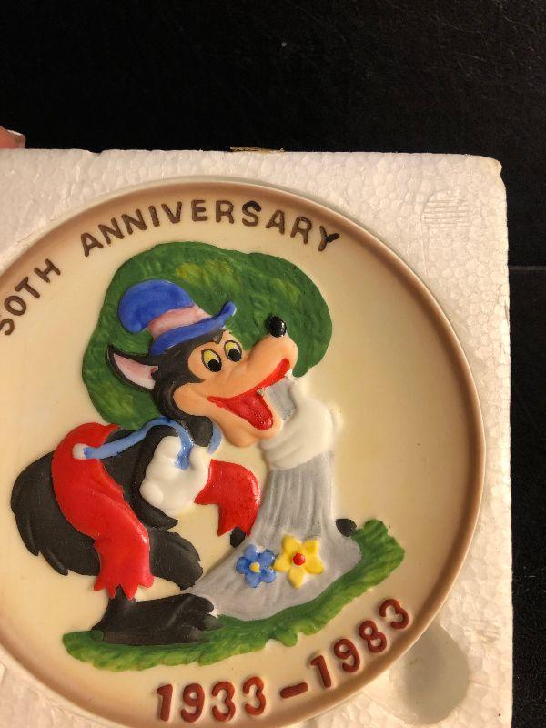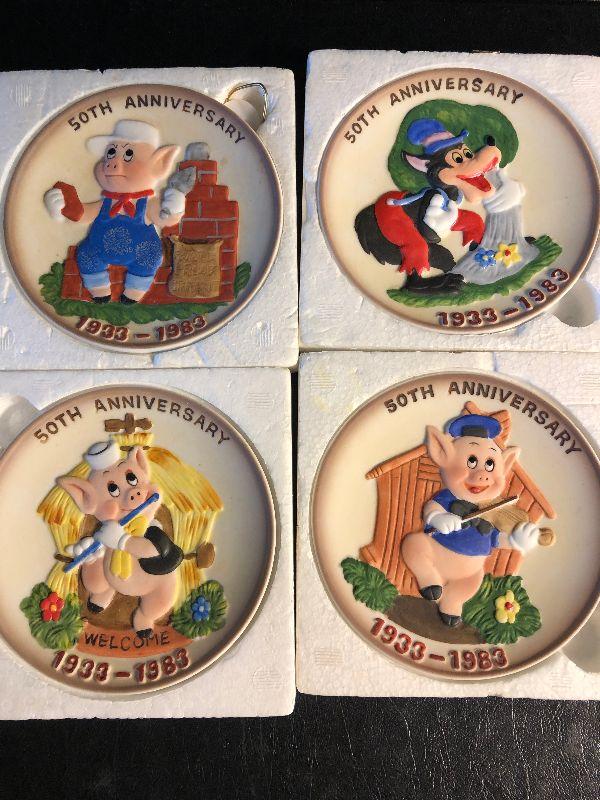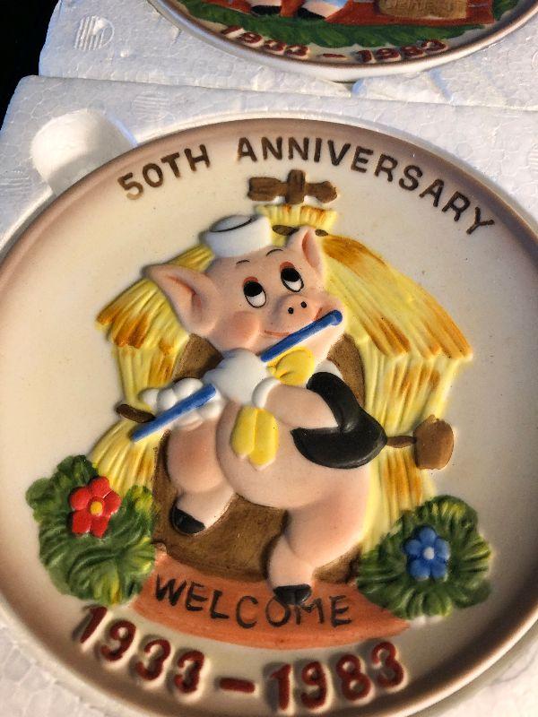 50th Anniversary 1933-1983 mini plates with plate stands. Featuring three little piggys and the big bad wolfe. Please see all pictures for contents of the lot, the condition of items in the lot, and measurements of the items if taken. Thank you for looking and have fun bidding.