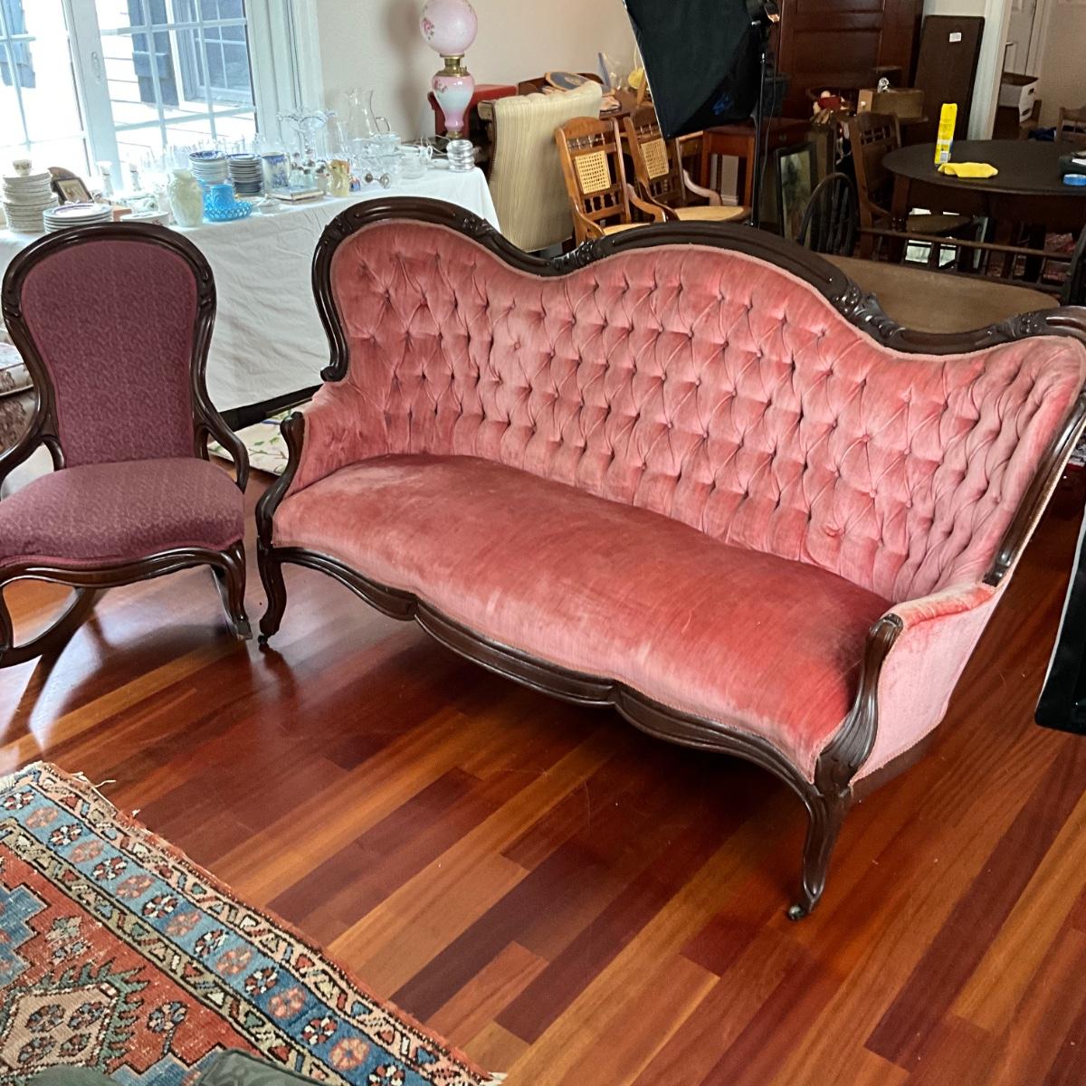 Sofa is in very good condition with tufted back , measuring 75" wide x 40" high x 24" deep
