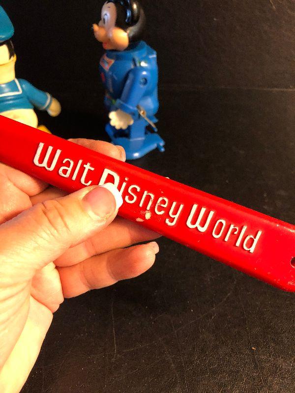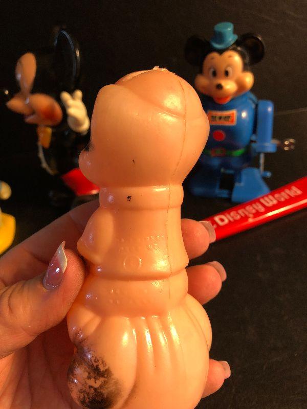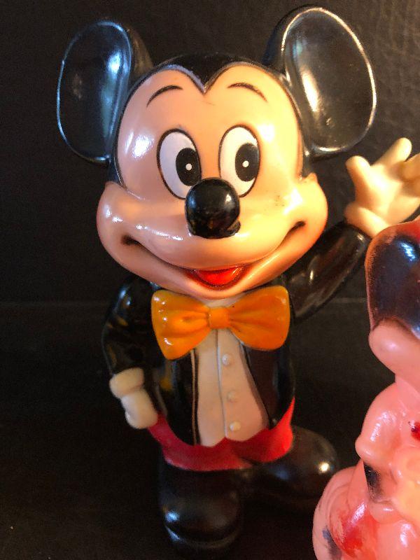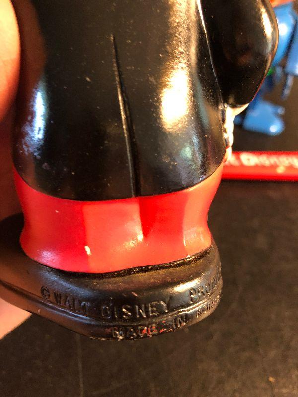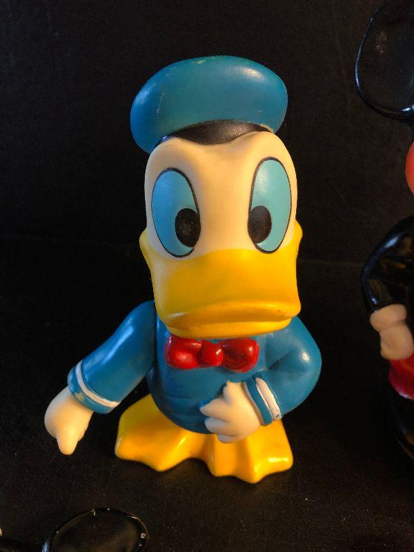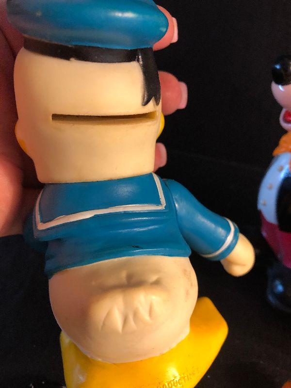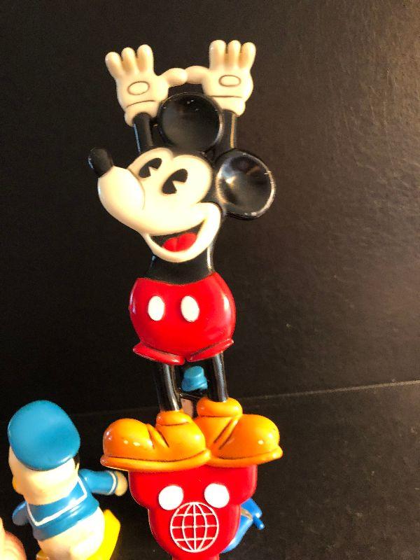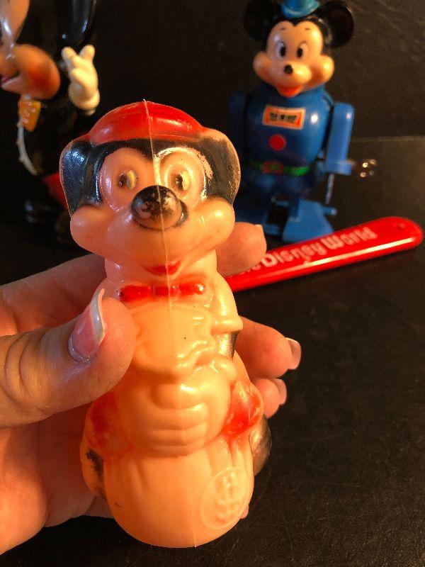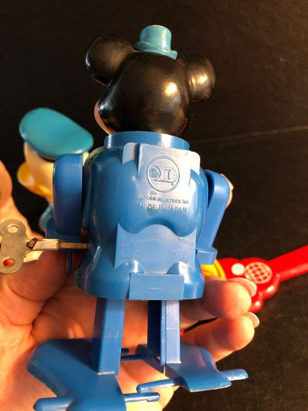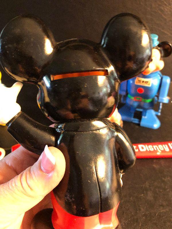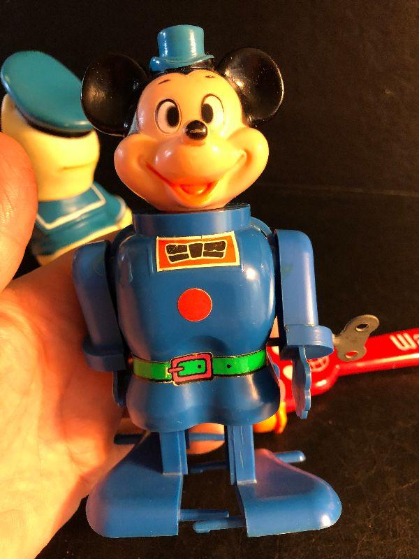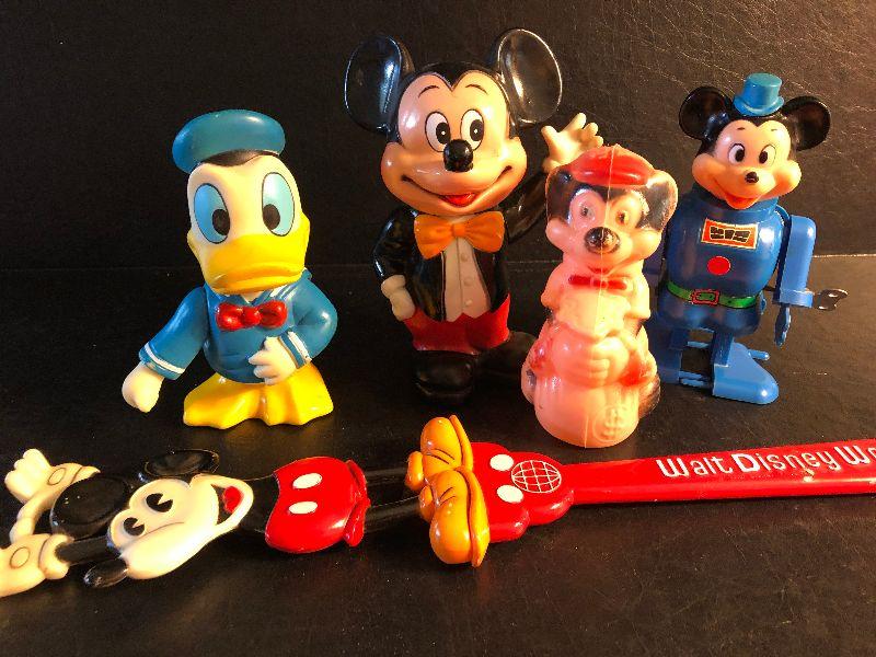 Mickey bank, Donald bank, wind up micky robot, Mickey back scratcher and Mickey with money bag.
