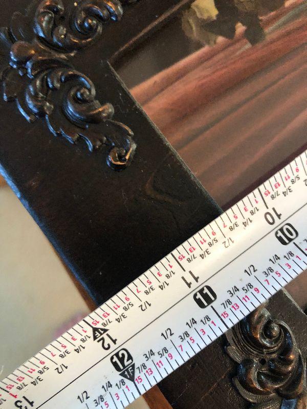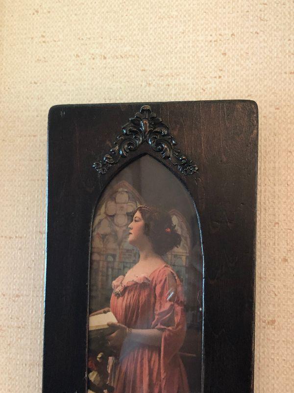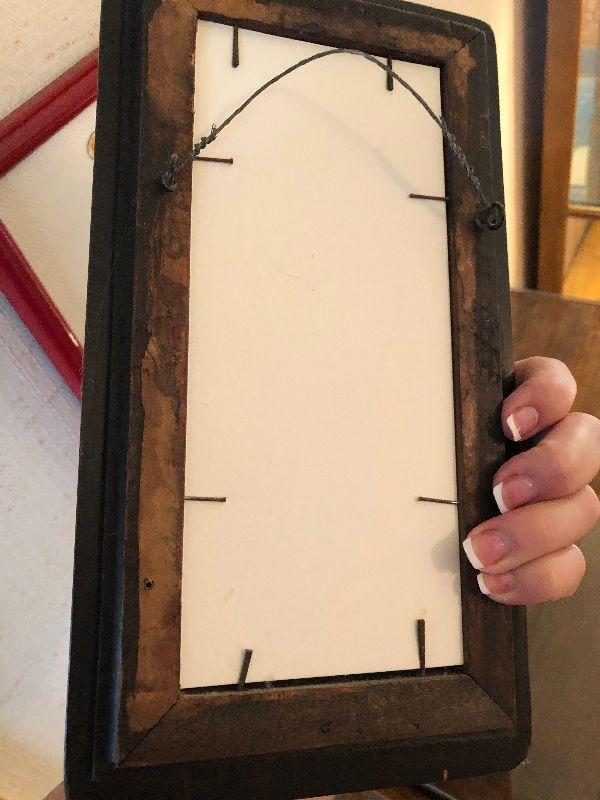This is petit in size and looks beautiful hung on wall. Dark carved wood with windowpane shaped glass frame. Please see all pictures for contents of the lot, the condition of items in the lot, and measurements of the items if taken. Thank you for looking and have fun bidding.