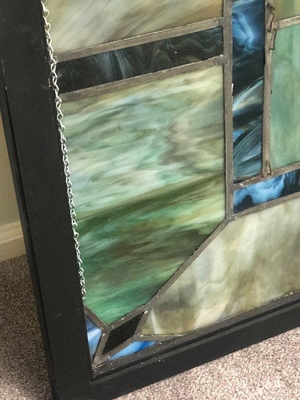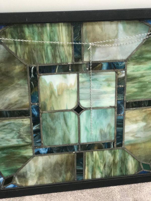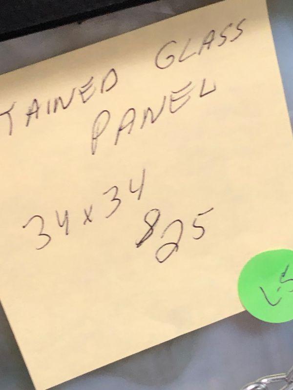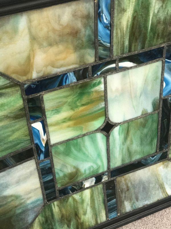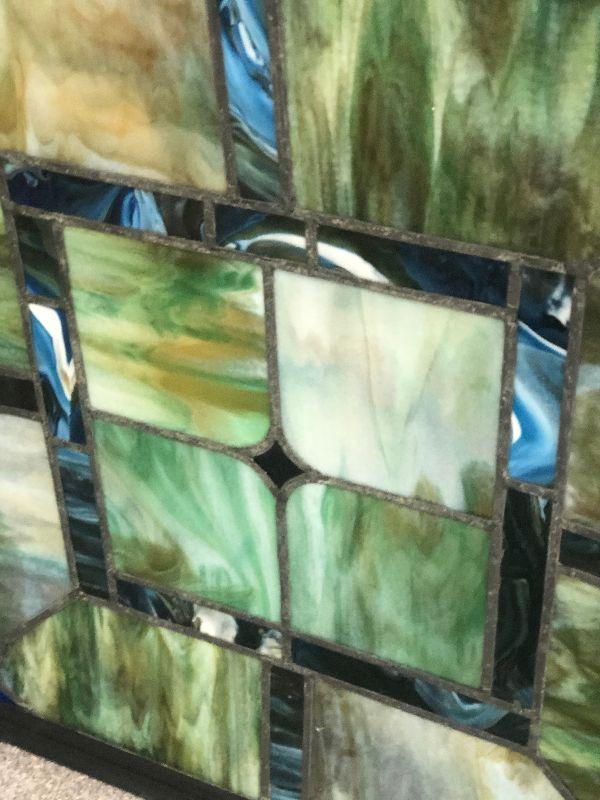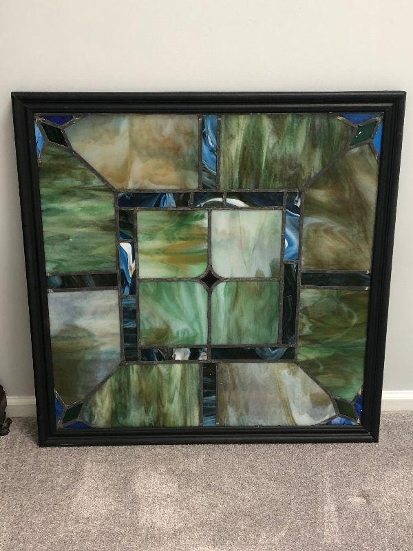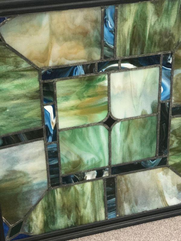 Beautiful stained glass panel, made with lead and possibly slag Glass 34x34. Please see all pictures for contents in this listing, the condition of items in the listing, and the size if measurements were taken. Thank you for looking and have fun bidding.