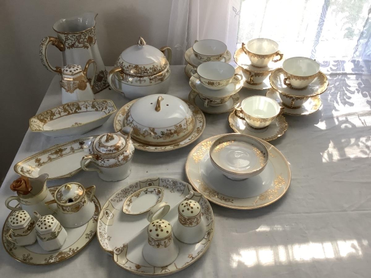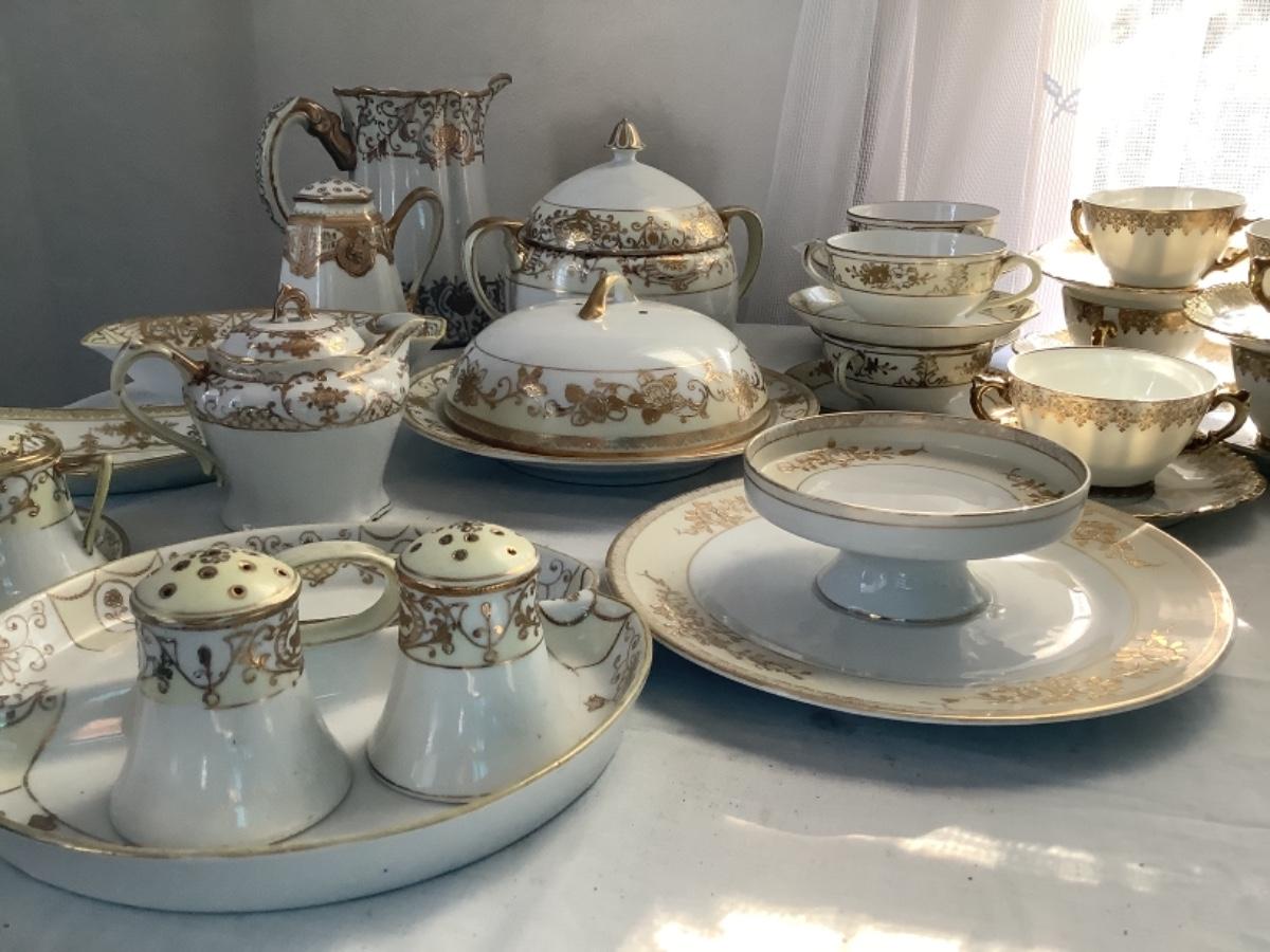 F507 34 pc Set of Antique Handpainted Nippon Gold &Cream China