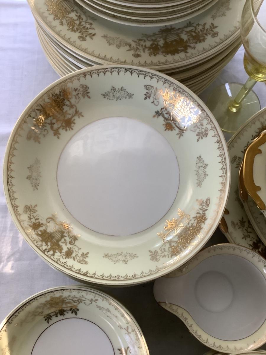 F508 83pc Set of SIS Handpainted Gold and Cream China