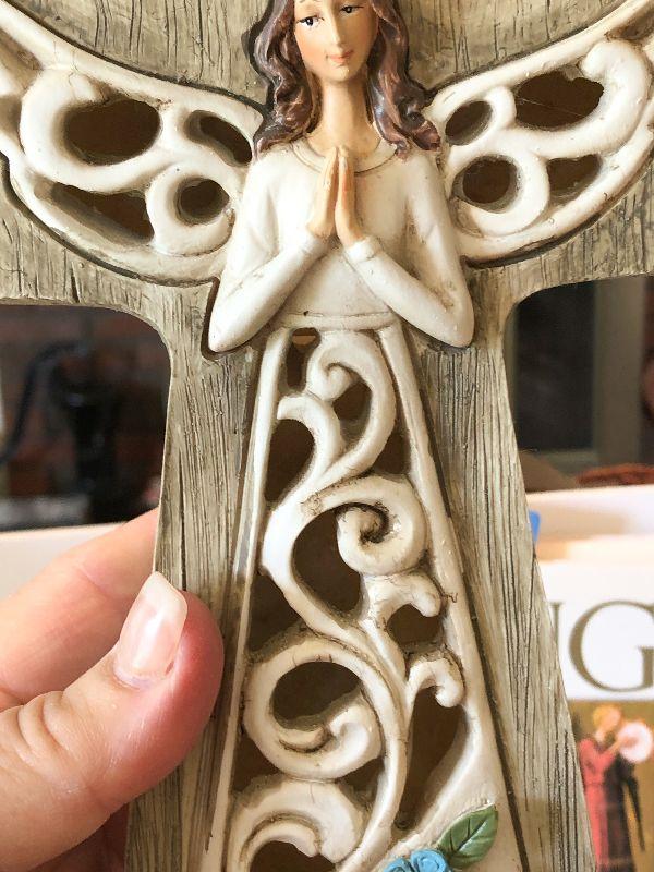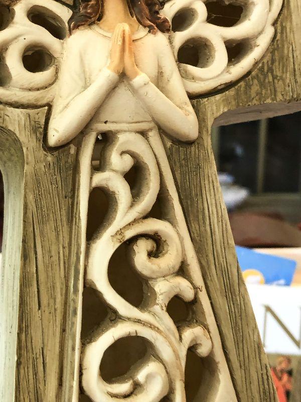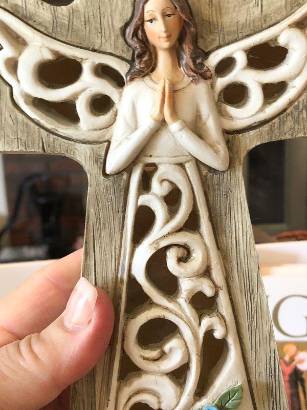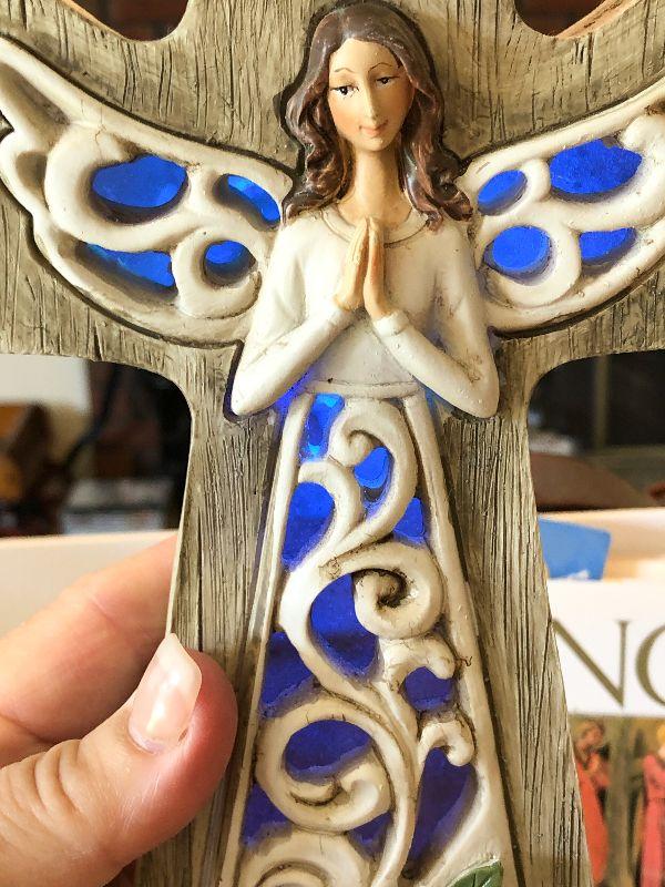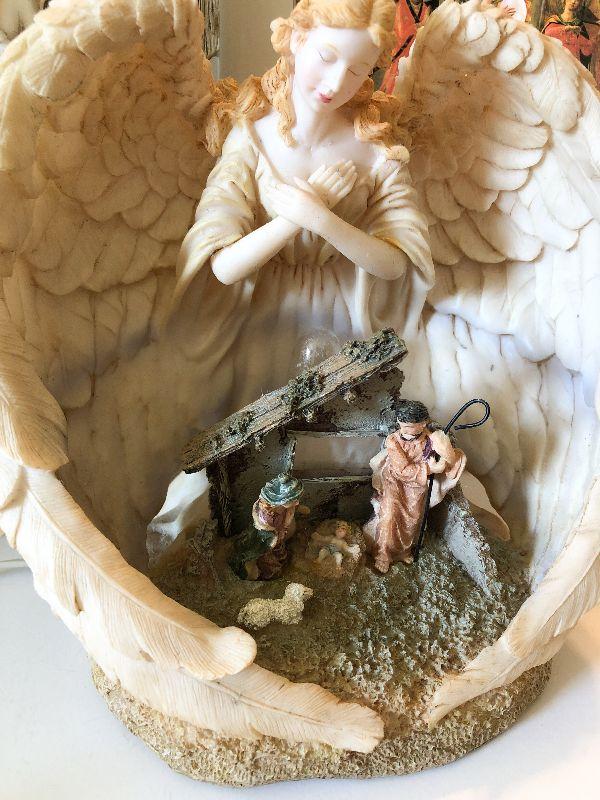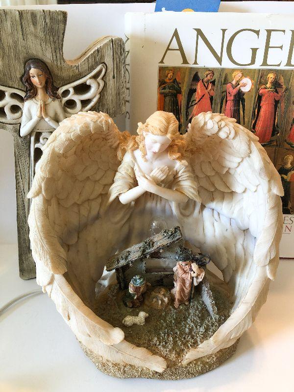 This lot has a cross with an angel that glows blue when turned on, and a plug in soft glow angel with nativity in her wings! Included is a book about angels. Please see all pictures for exact contents of the lot, condition of the items, and if measurements if taken. Thank you for looking and have fun bidding.