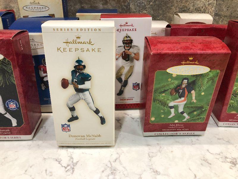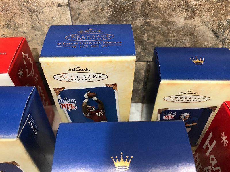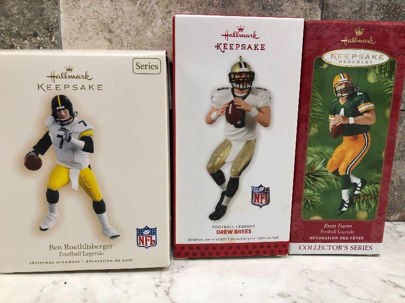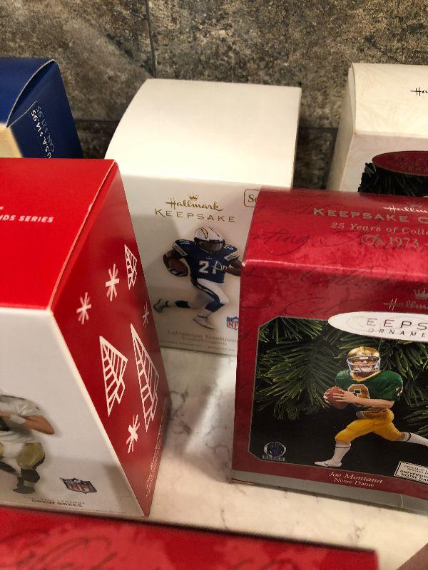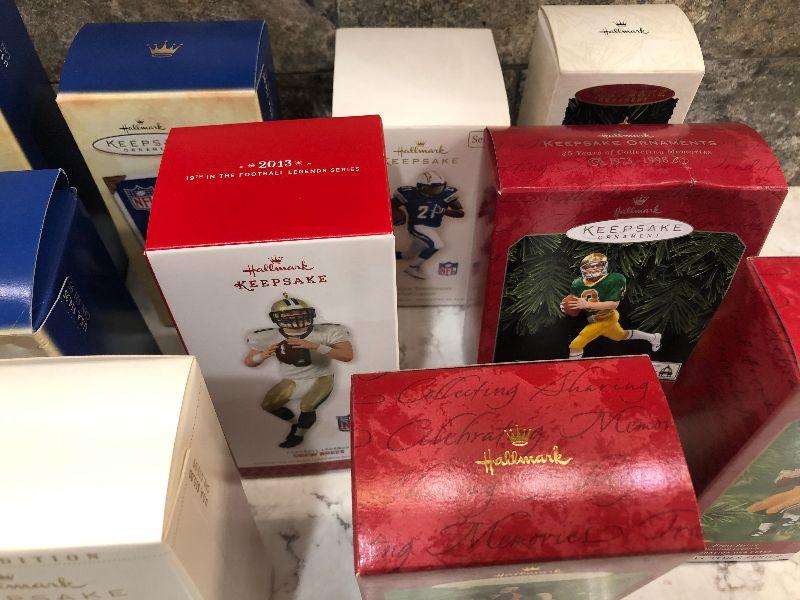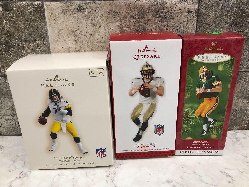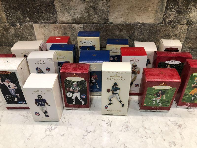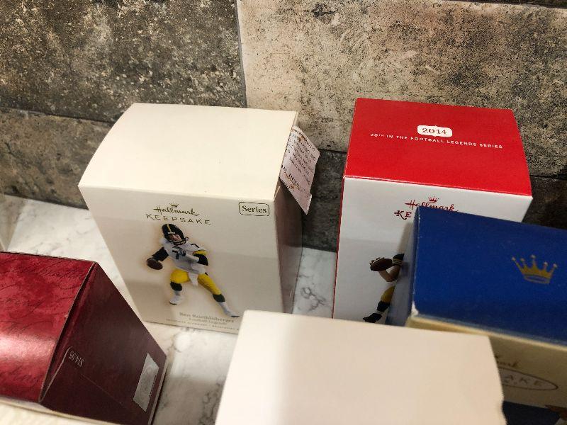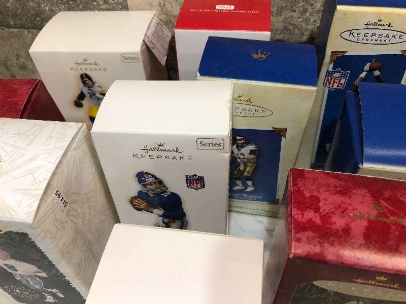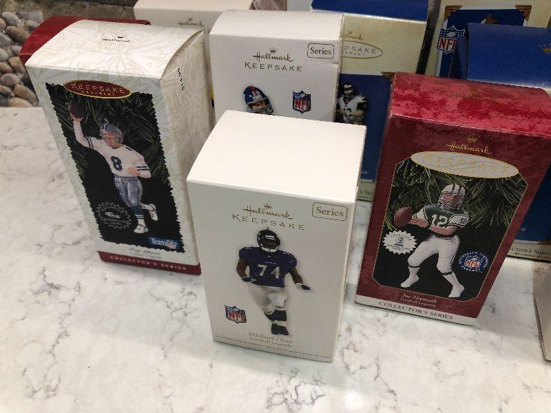 Lot of Pro Football Players keepsake ornaments by Hallmark. Collectibles. Please see all pictures for condition and measurements if taken. All items are sold as found and if furniture, you will need to be able to move yourself. Thank you for looking and have fun bidding! As always, thank you for being a Treasure Me Hunter!
