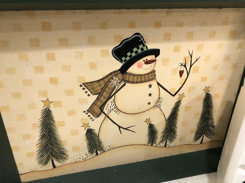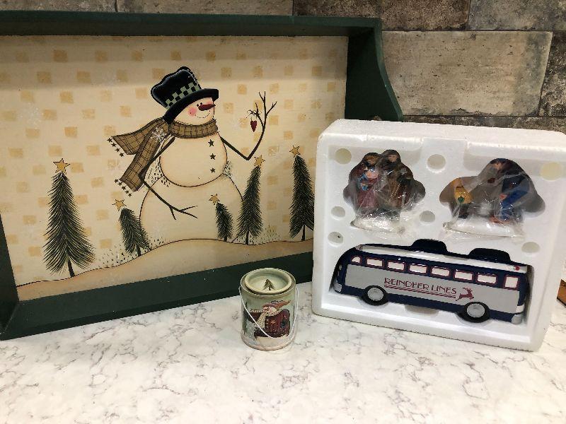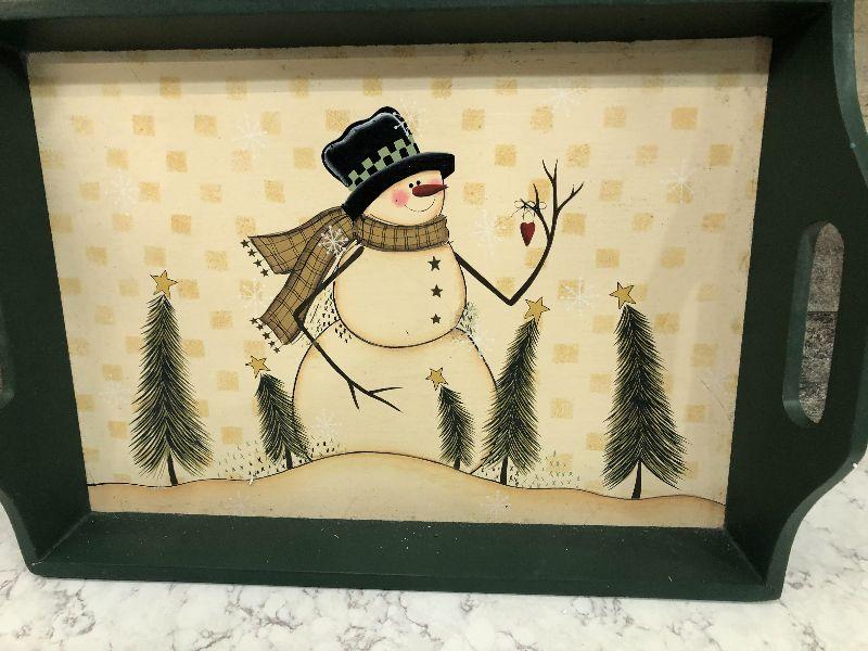 Department 56 Reindeer Lines and snowman serving tray. Please see all pictures for condition and measurements if taken. All items are sold as found and if furniture, you will need to be able to move yourself. Thank you for looking and have fun bidding! As always, thank you for being a Treasure Me Hunter!