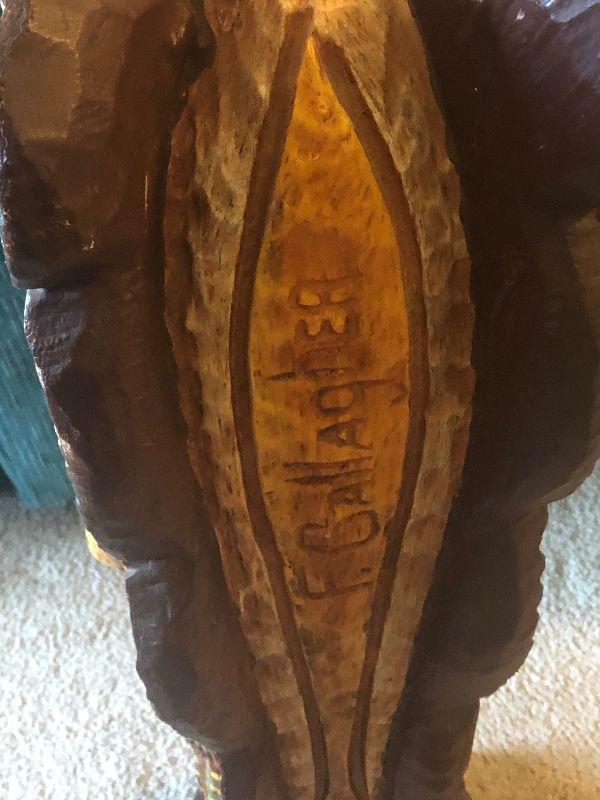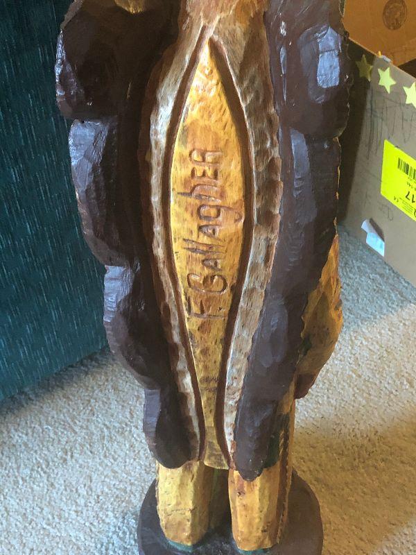 This is a unique find. Carved by the famous Gallagher family. Great piece of Southwest Art and highly collectible. Please see pictures. This is under 3 feet tall. It measures to about the top of the couch edge.