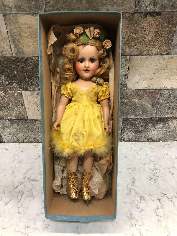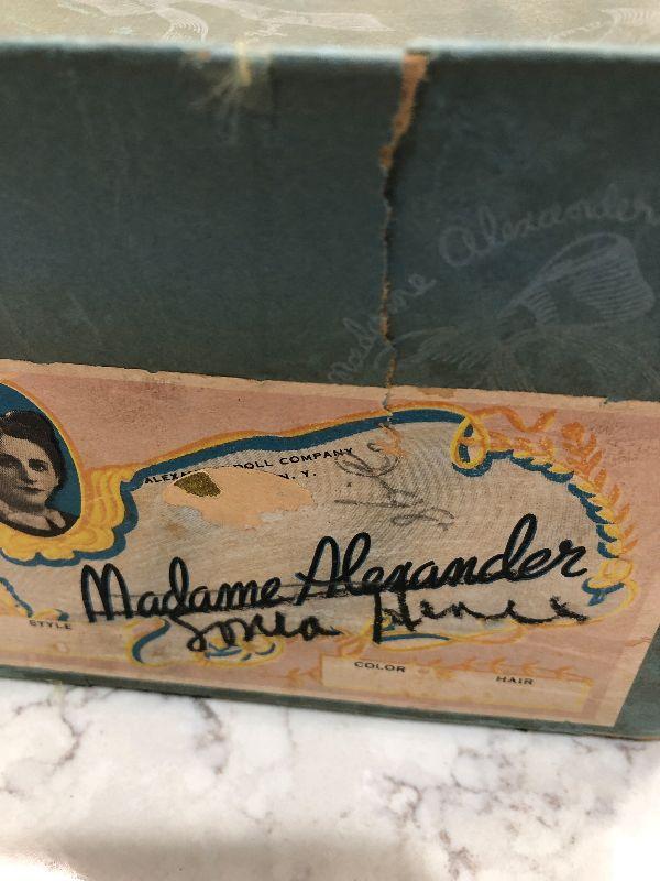 Vintage 1942 Sonja Henie 14" Doll in original box. This doll is very old and does show wear, including staining on her dress, her fur is coming off a little, and her eye has wear. She is still very desirable, especially her skates! Please see all pictures for condition and measurements if taken. All items are sold as found and if furniture, you will need to be able to move yourself. Thank you for looking and have fun bidding! As always, thank you for being a Treasure Me Hunter!