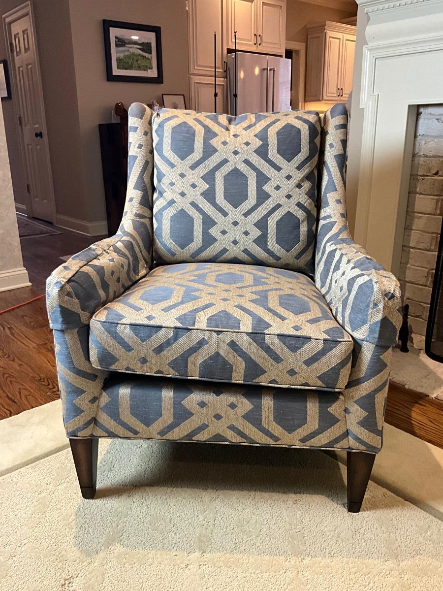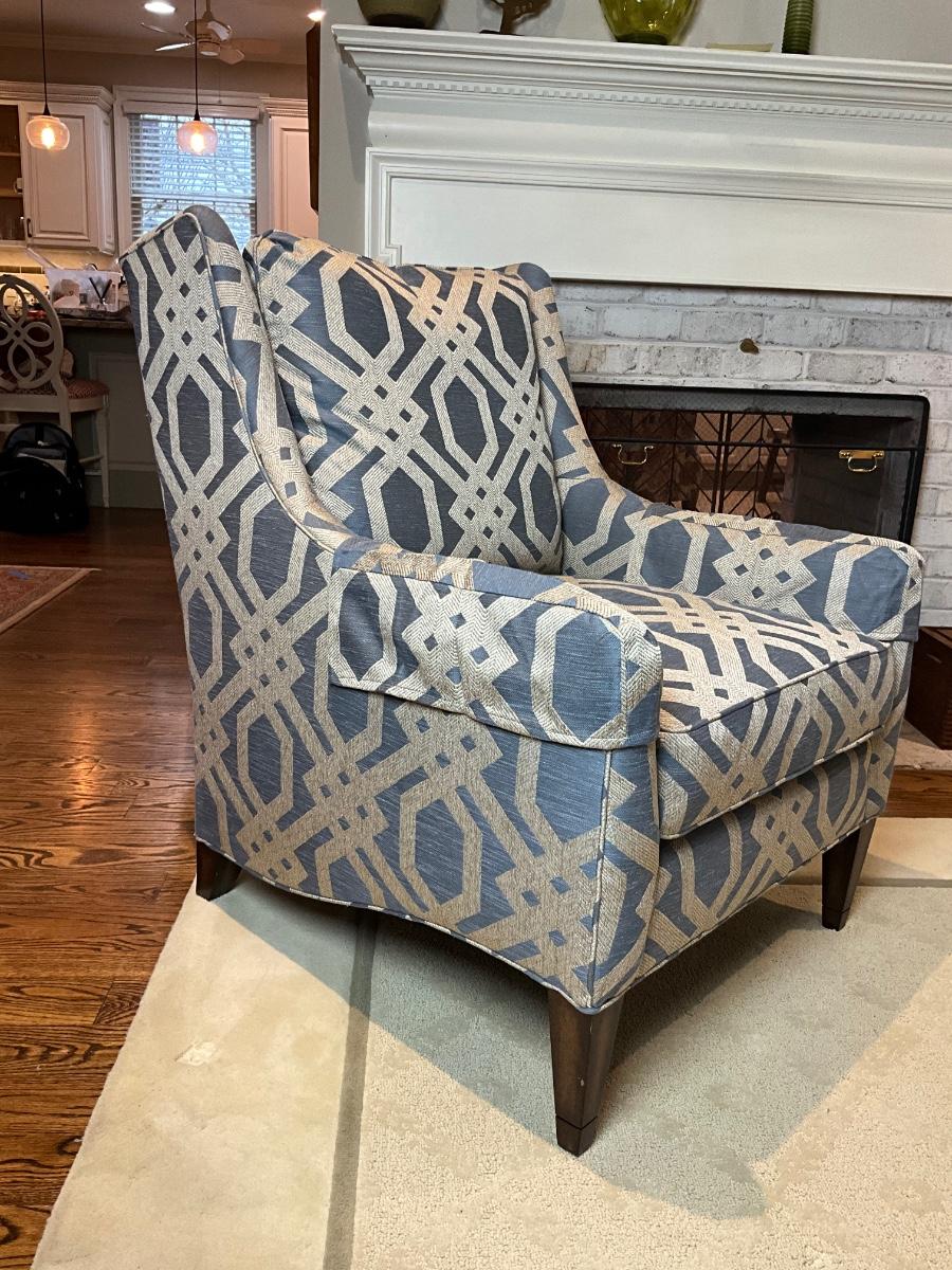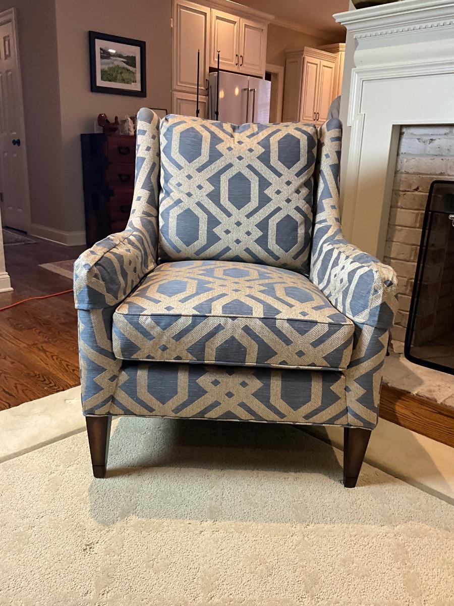 L601 Beautiful PEARSON Blue and Silver Upholstered Arm Chair