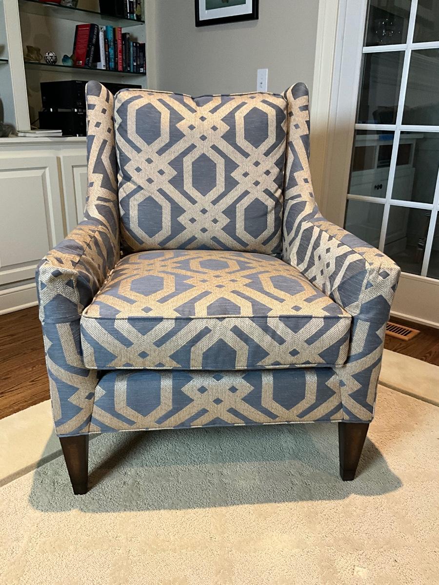 L602 PEARSON Blue and Silver Upholstered Arm Chair