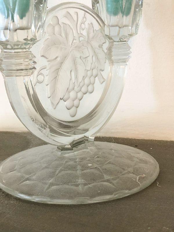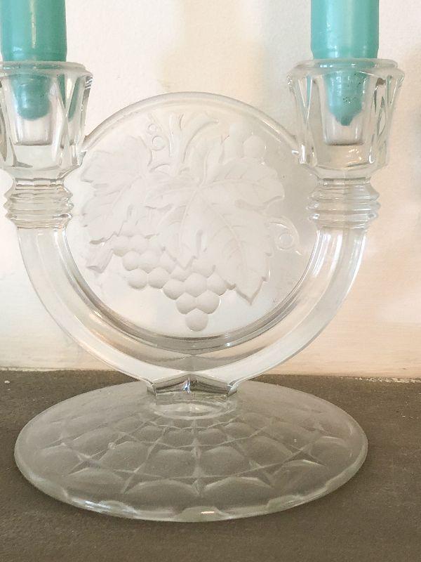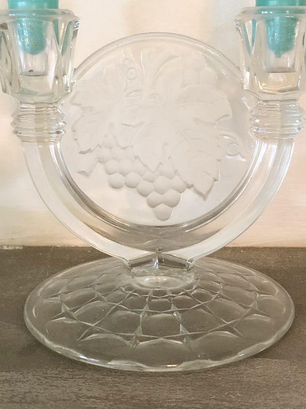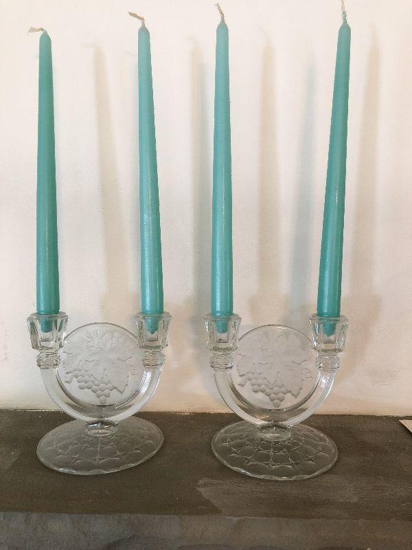 L64: Vintage Pair of Glass Candle Sticks Grape Design