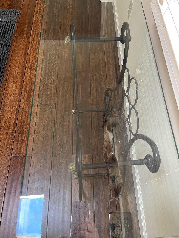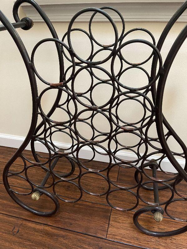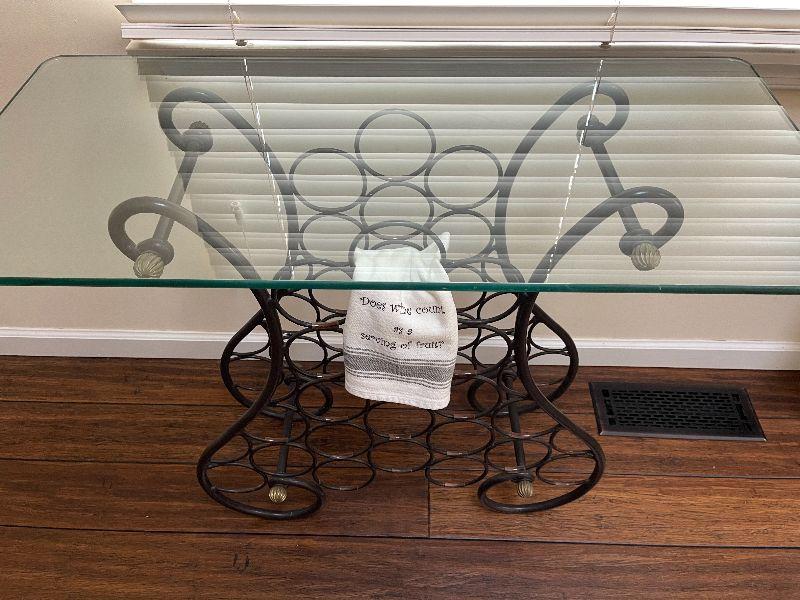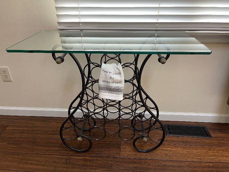 Beautiful! Holds about 20-22 wine bottles, with a thick glass top. Please see all pictures for condition and measurements if taken. All items are sold as found and if furniture, you will need to be able to move yourself. Thank you for looking and have fun bidding! As always, thank you for being a Treasure Me Hunter!