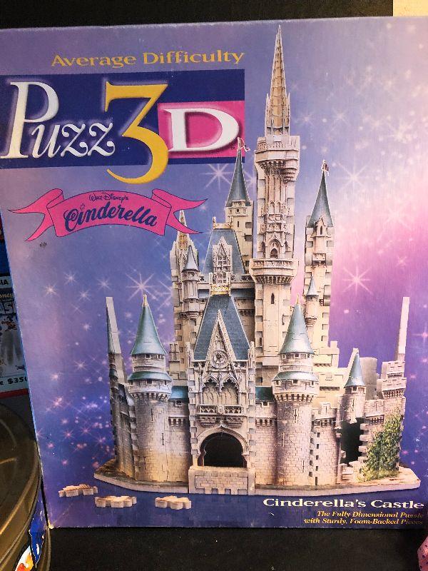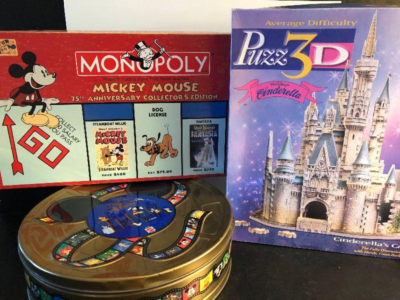 Disney trivia, Mickey Monopoly and Cinderella Castle 3D puzzle.