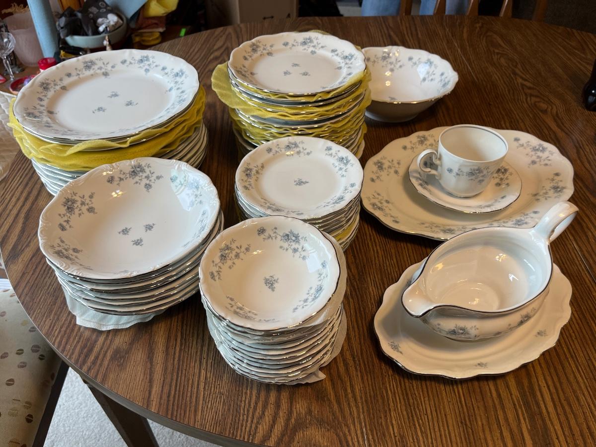 Beautiful set!! 12 place settings (missing 4 bowls).