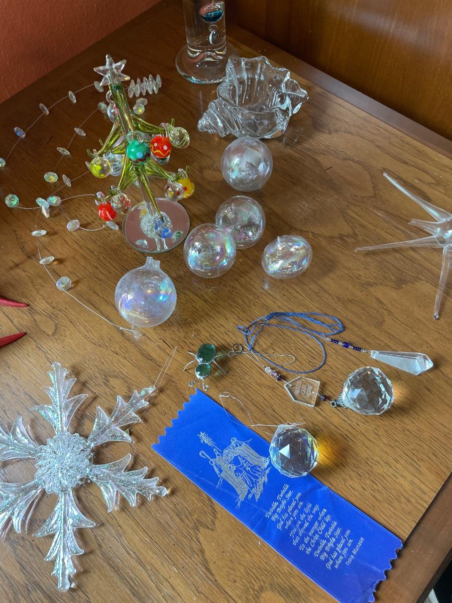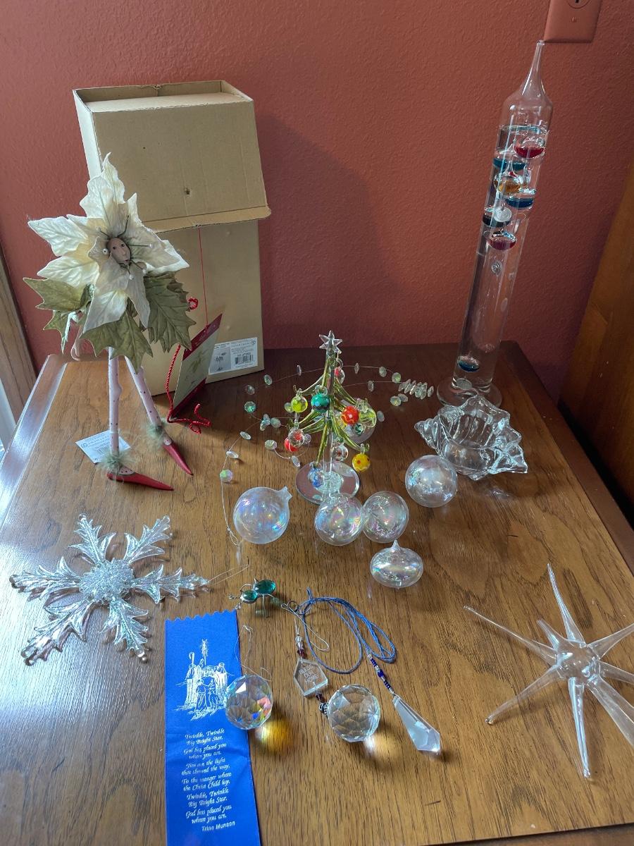 L71- Galileo Thermometer, glass tree/ornaments, other glass itrms
