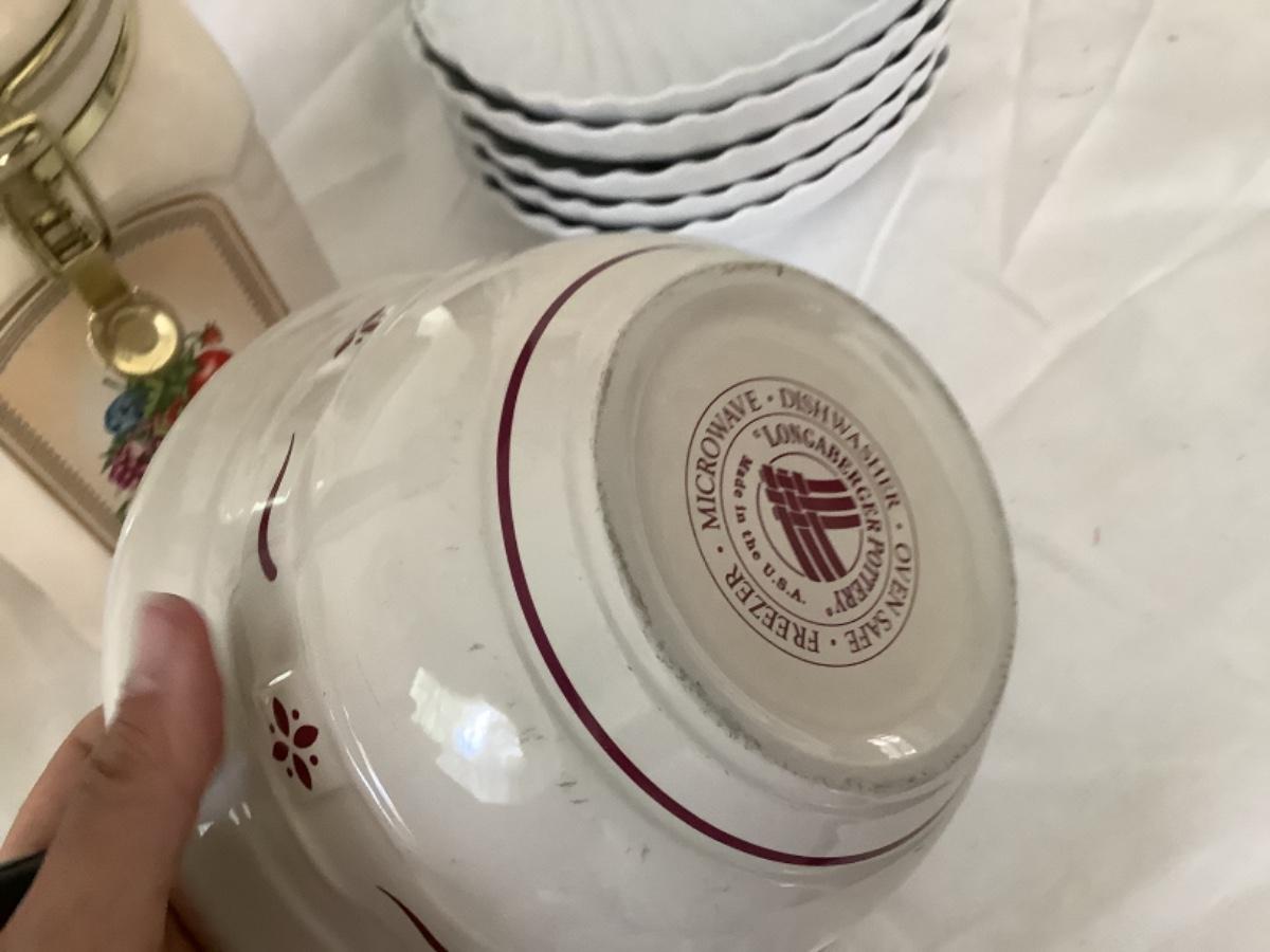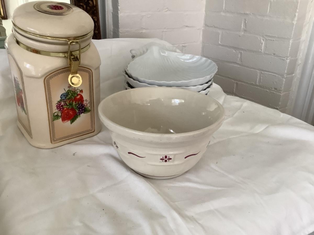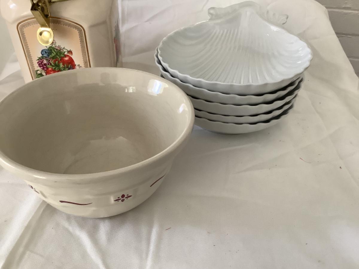 L714 Lot of Shell Plates and Jar with Longaberger Mixing Bowl