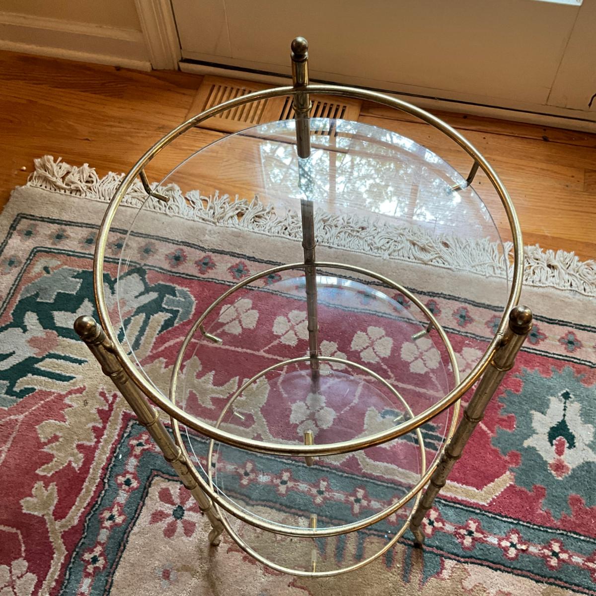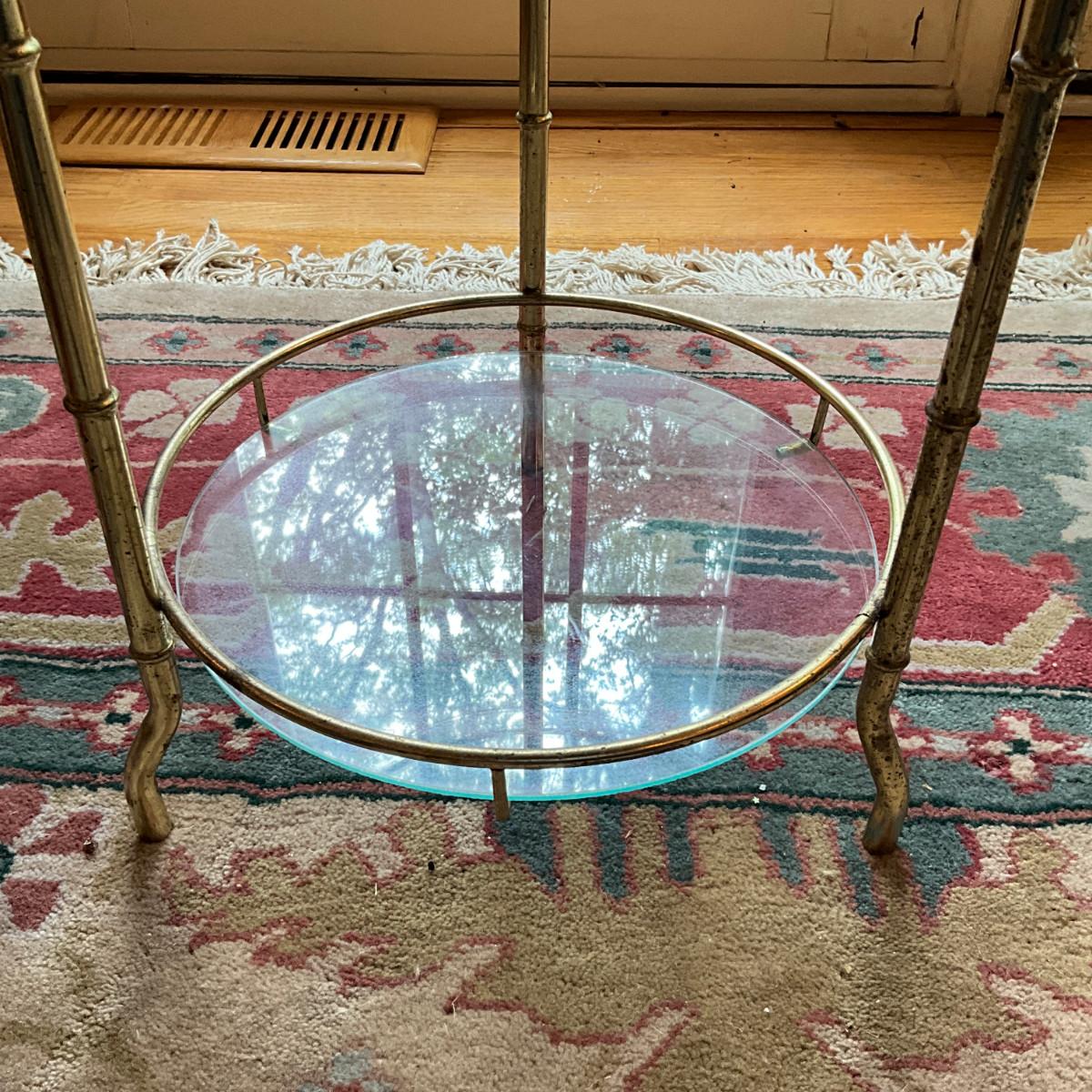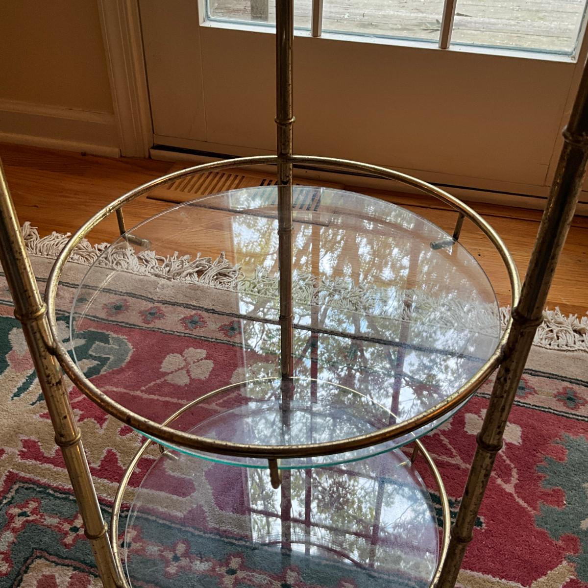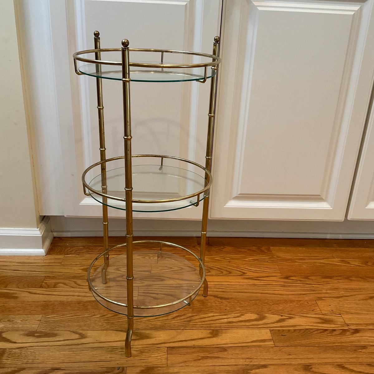 L726 Vintage Three Tier Glass & Bronze Shelf Stand