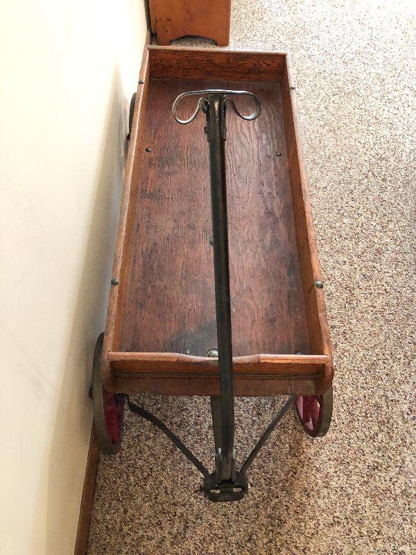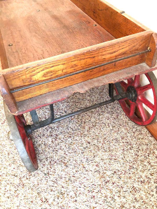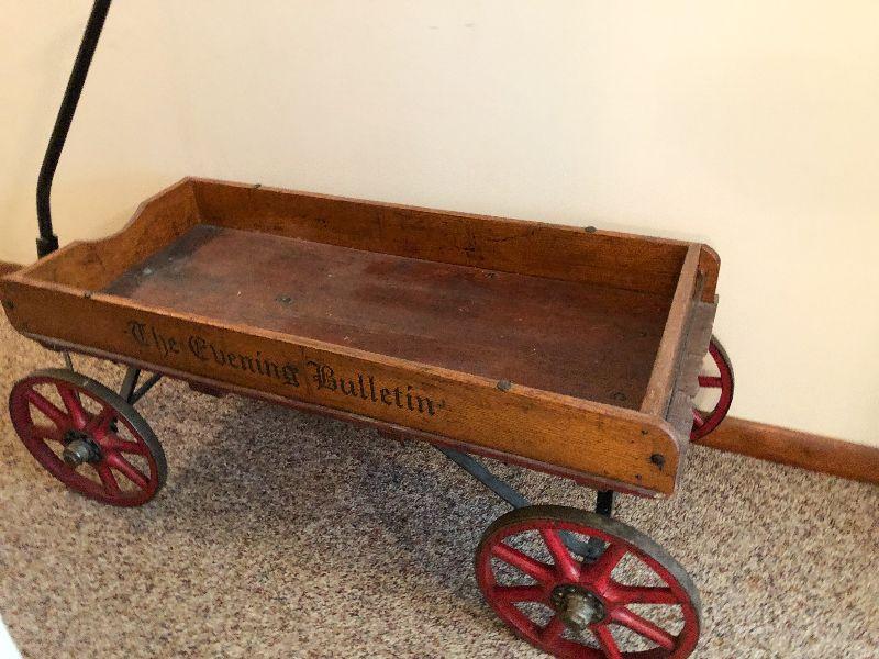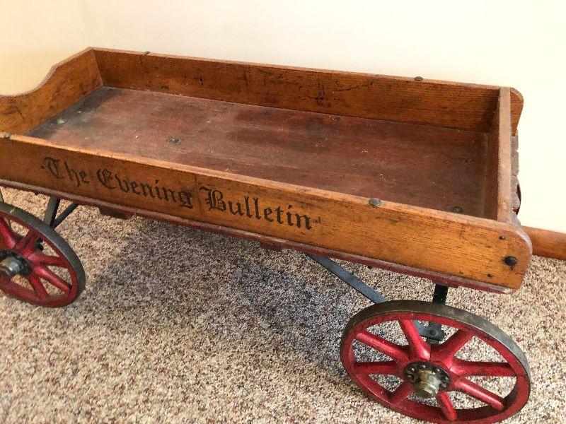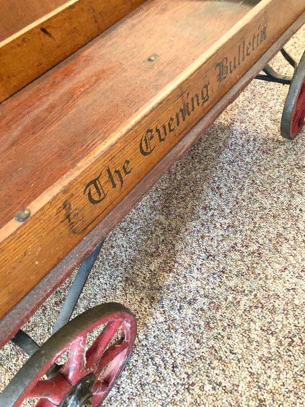 L73: Rare Antique Philadelphia Evening Bulletin Newspaper Wooden Delivery Pull Wagon
