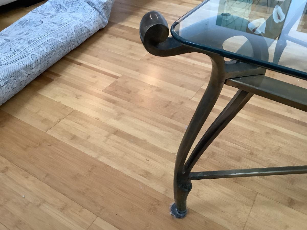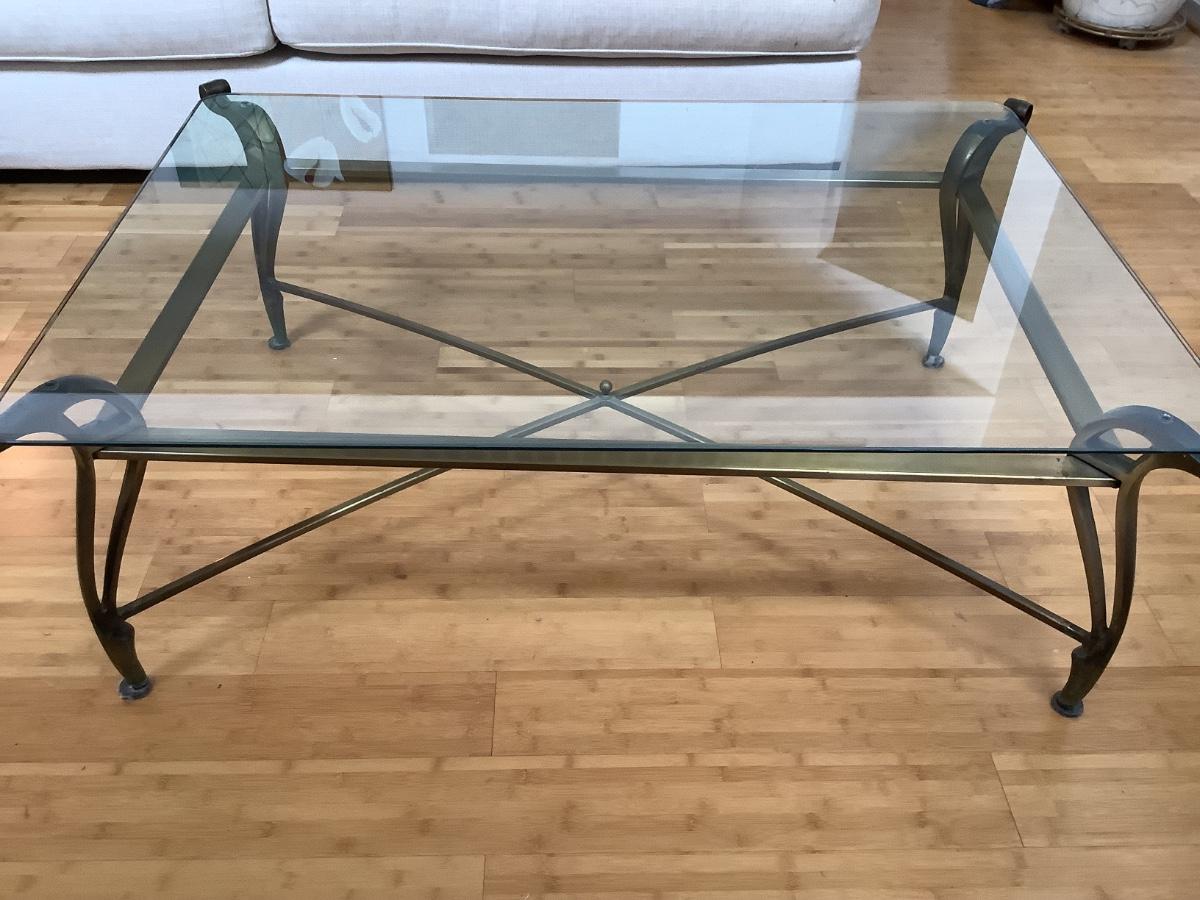 L734 Large Brass Glass Top Coffee Table