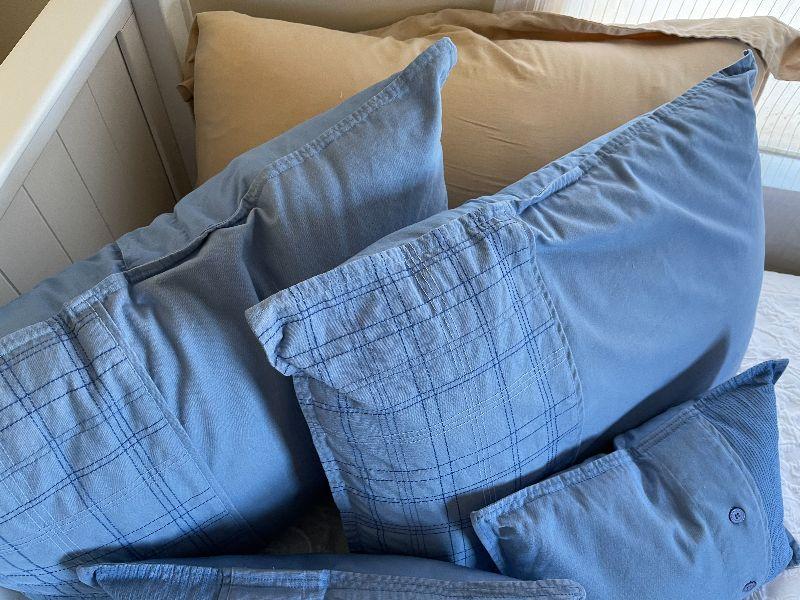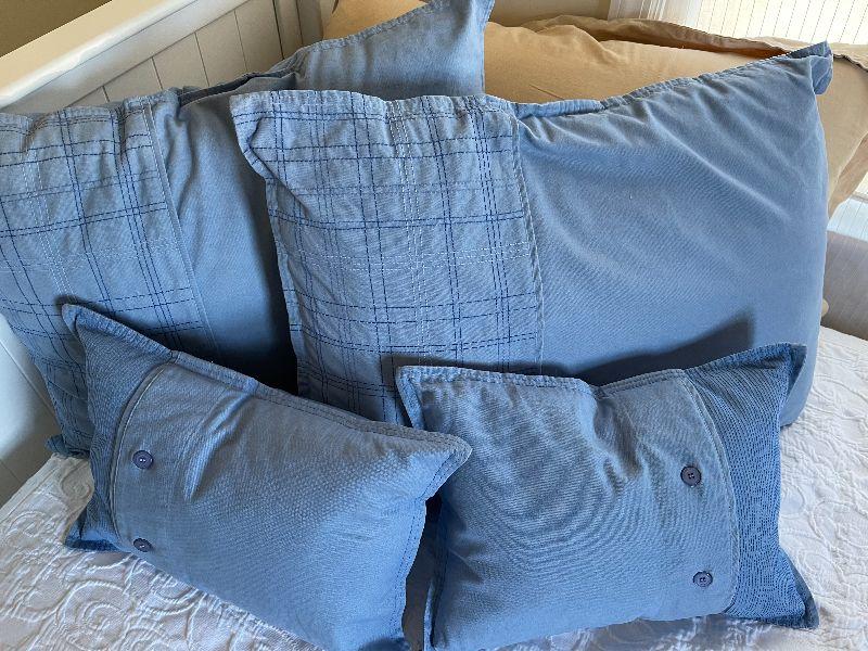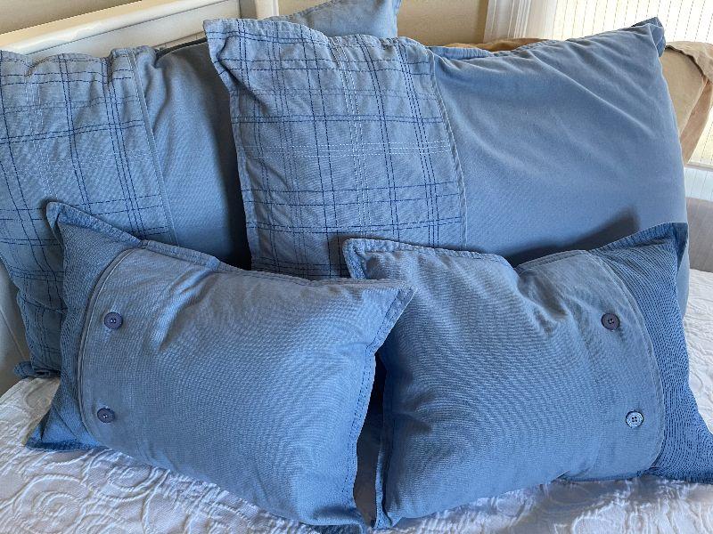 Two pillow shams, one king sham and two small throw pillow. Please see all pictures for condition and measurements if taken. All items are sold as found and if furniture, you will need to be able to move yourself. Thank you for looking and have fun bidding! As always, thank you for being a Treasure Me Hunter!