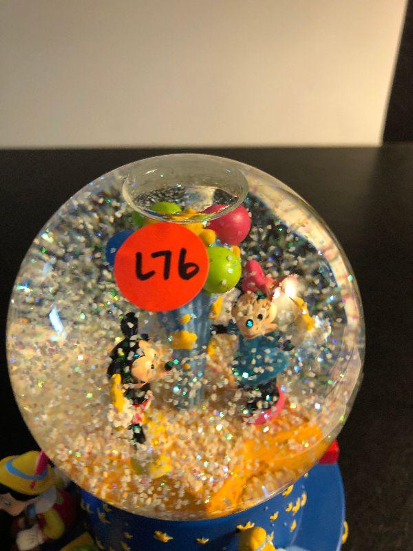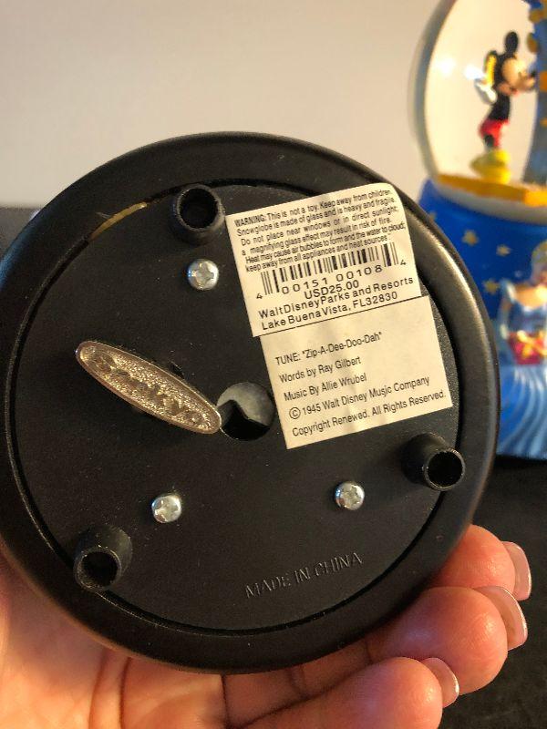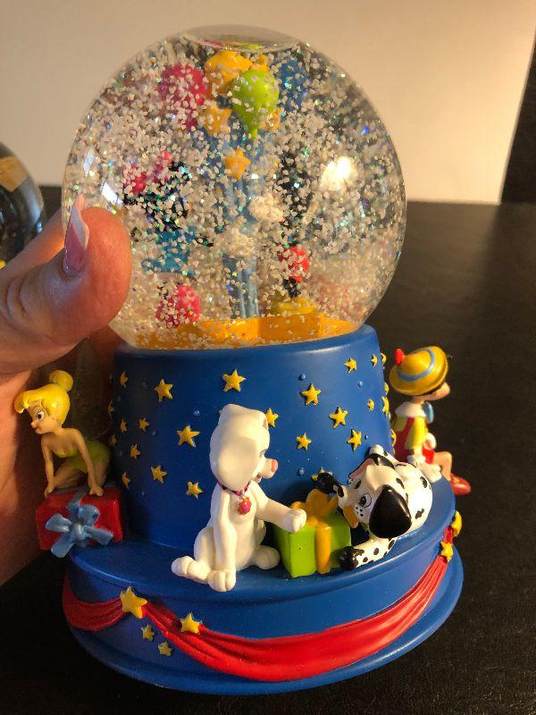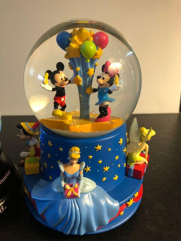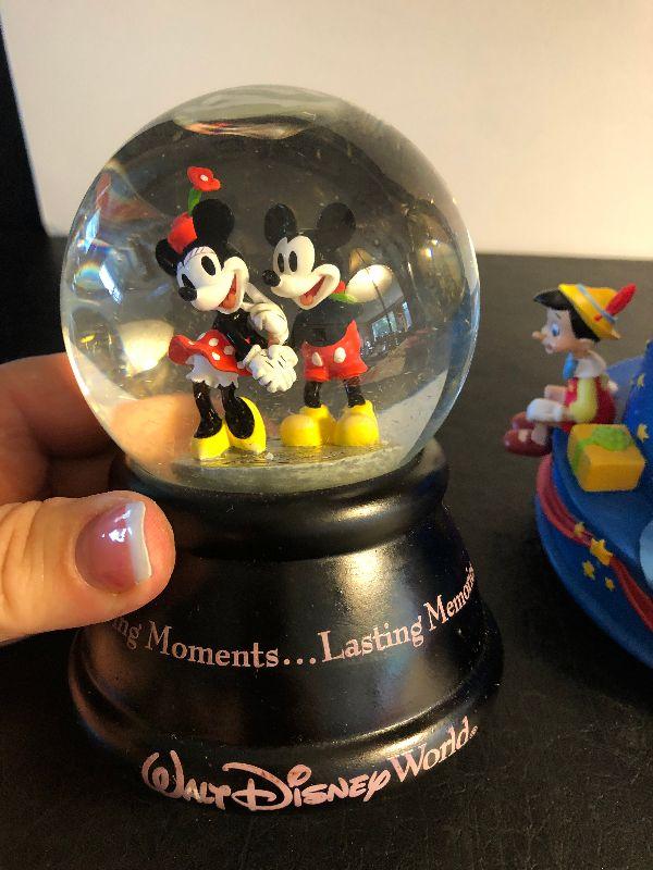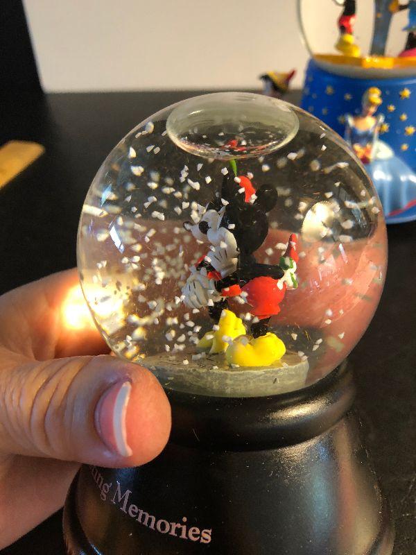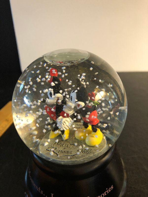 Walts 100th celebration snow globe. Minnie Mickey loving moments.