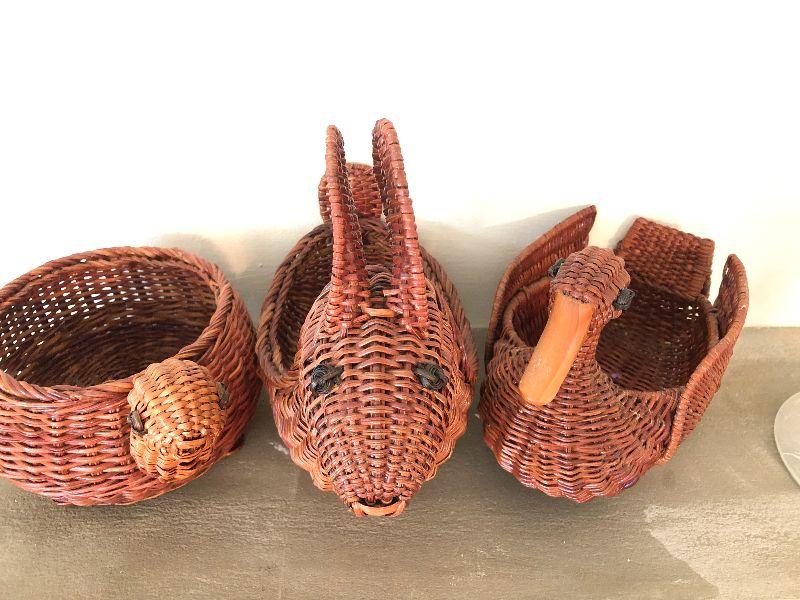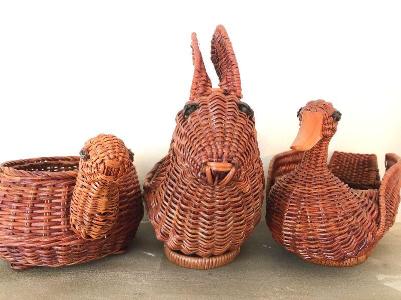 L78: Vintage Basket Lot Turtle, Rabbit, Duck