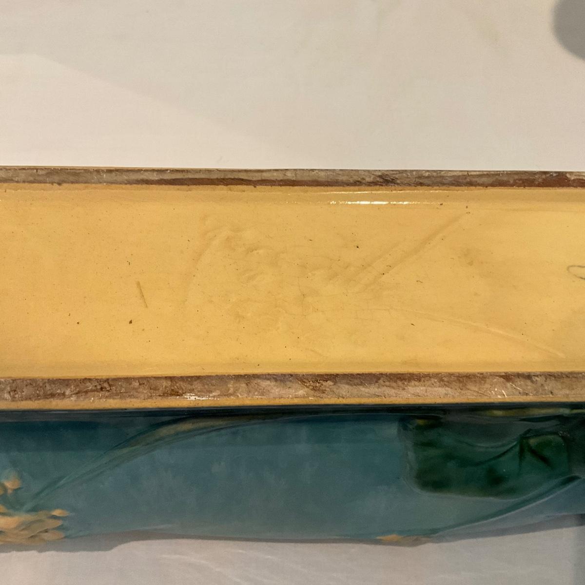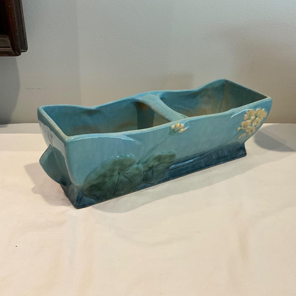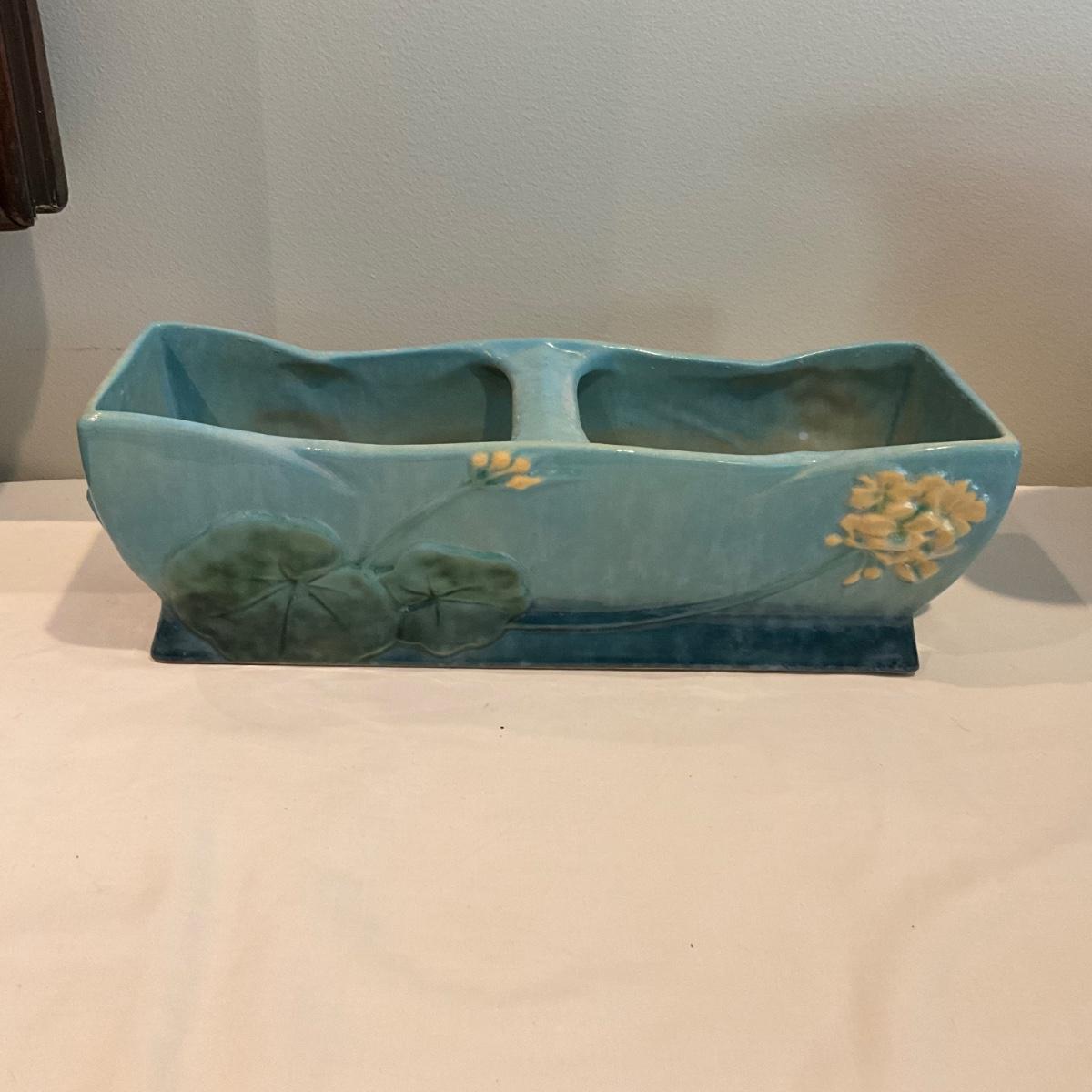 L813 Antique Roseville Pottery Winecraft Blue Window Box GLAZED Bowl