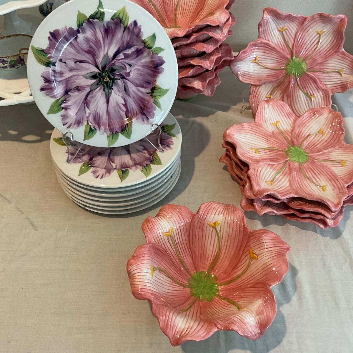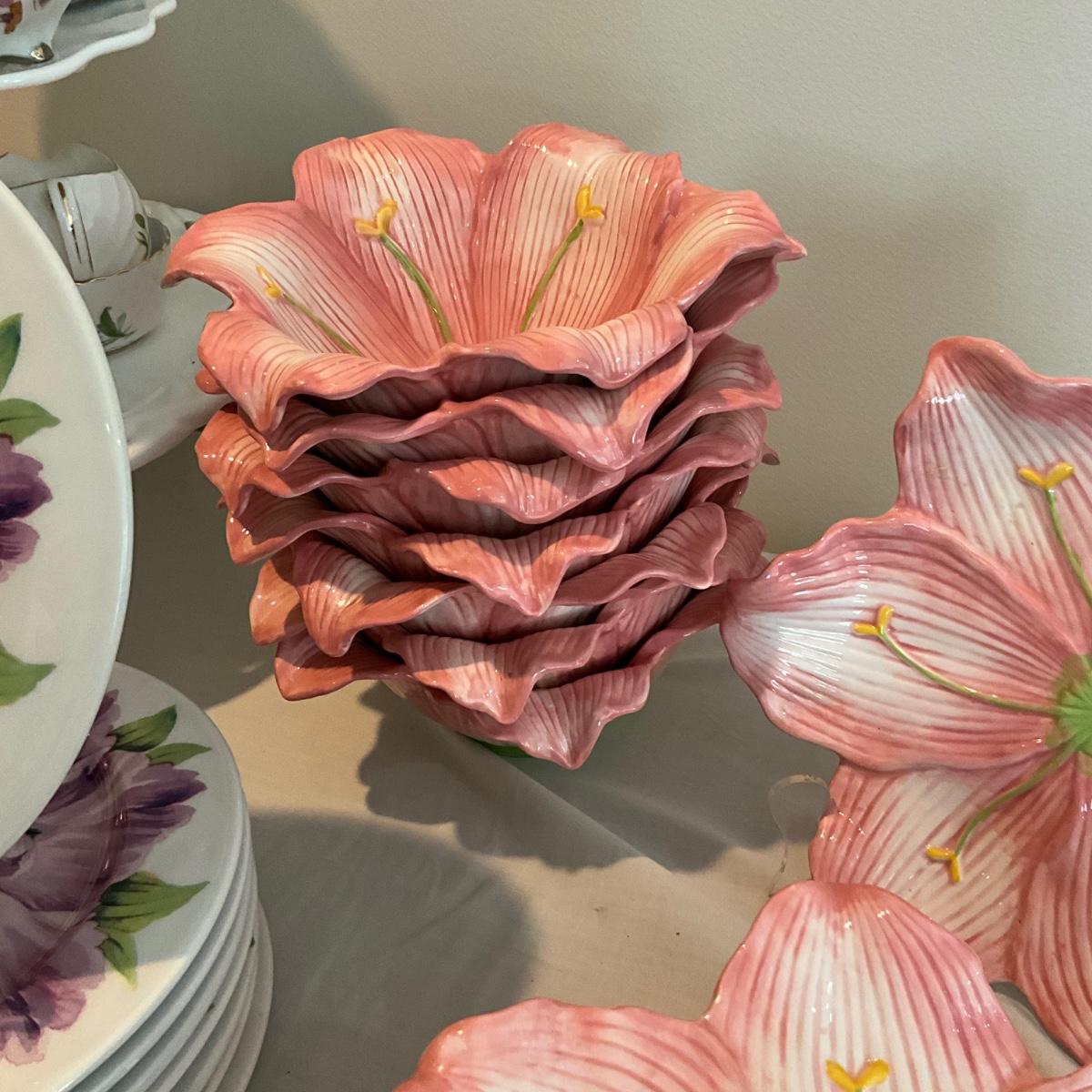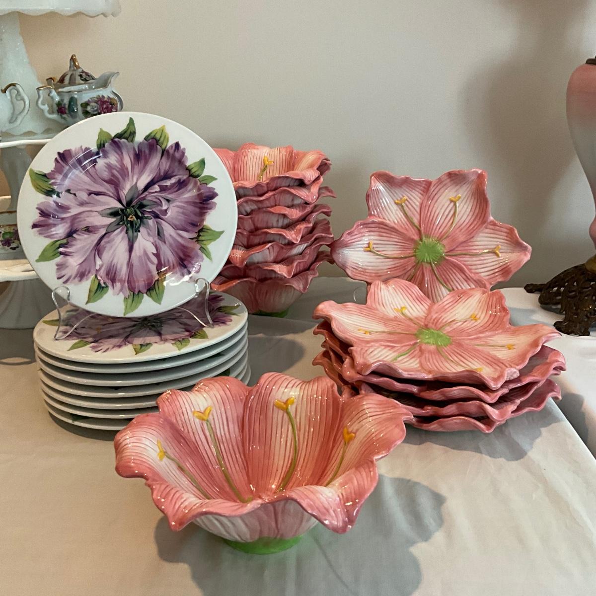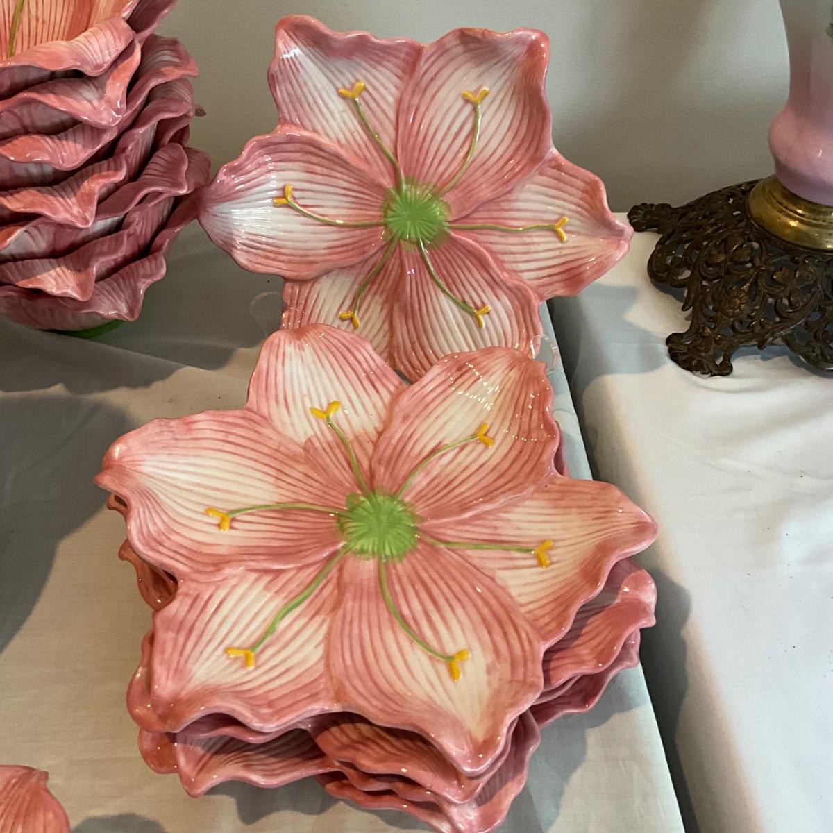 L826 Large Lot of Floral Lily Dishes by Nanette Vacher