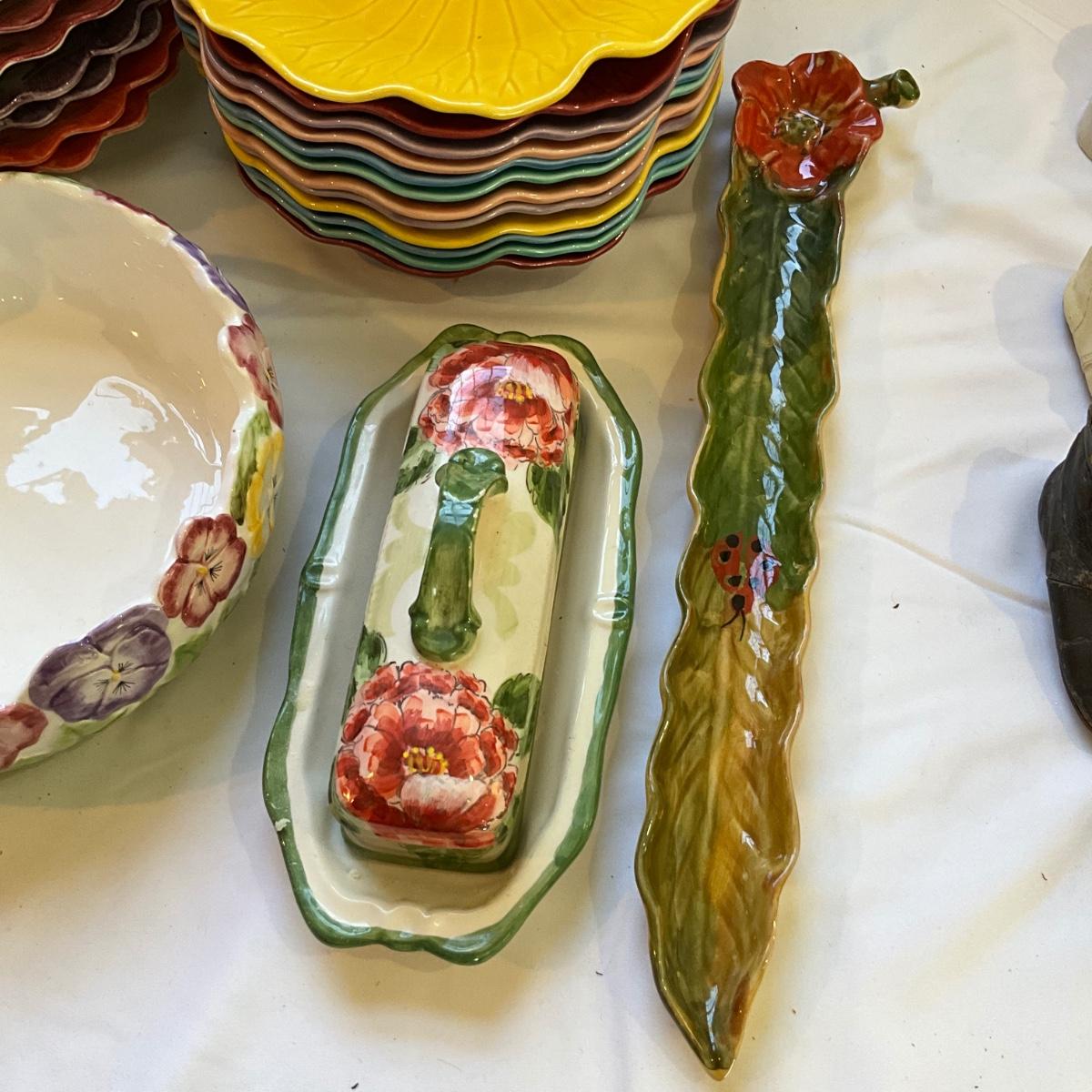 L829 Large Floral Pansy Fitz and Floyd & Metlox Dish Lot
