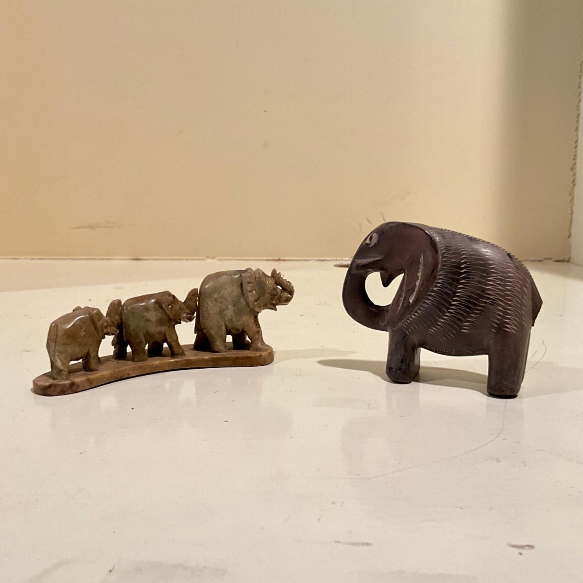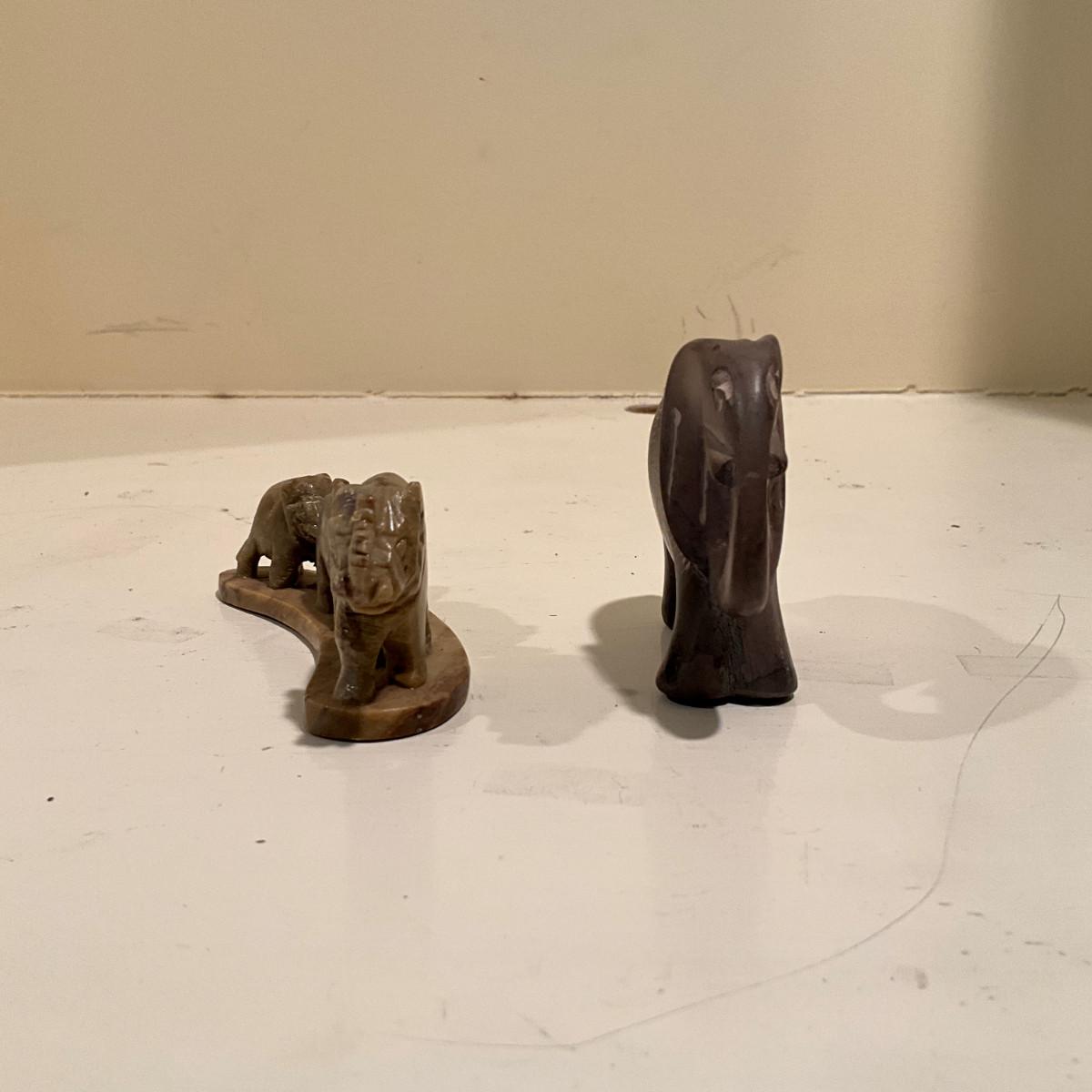 L833 Vintage Small Stone and Wood Carved Elephant Figures Kenya