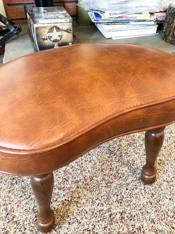 This is a nice solid, vintage foot stool with faux leather top. Please see all pictures for exact contents of the lot, condition of the items, and if measurements if taken. Thank you for looking and have fun bidding.