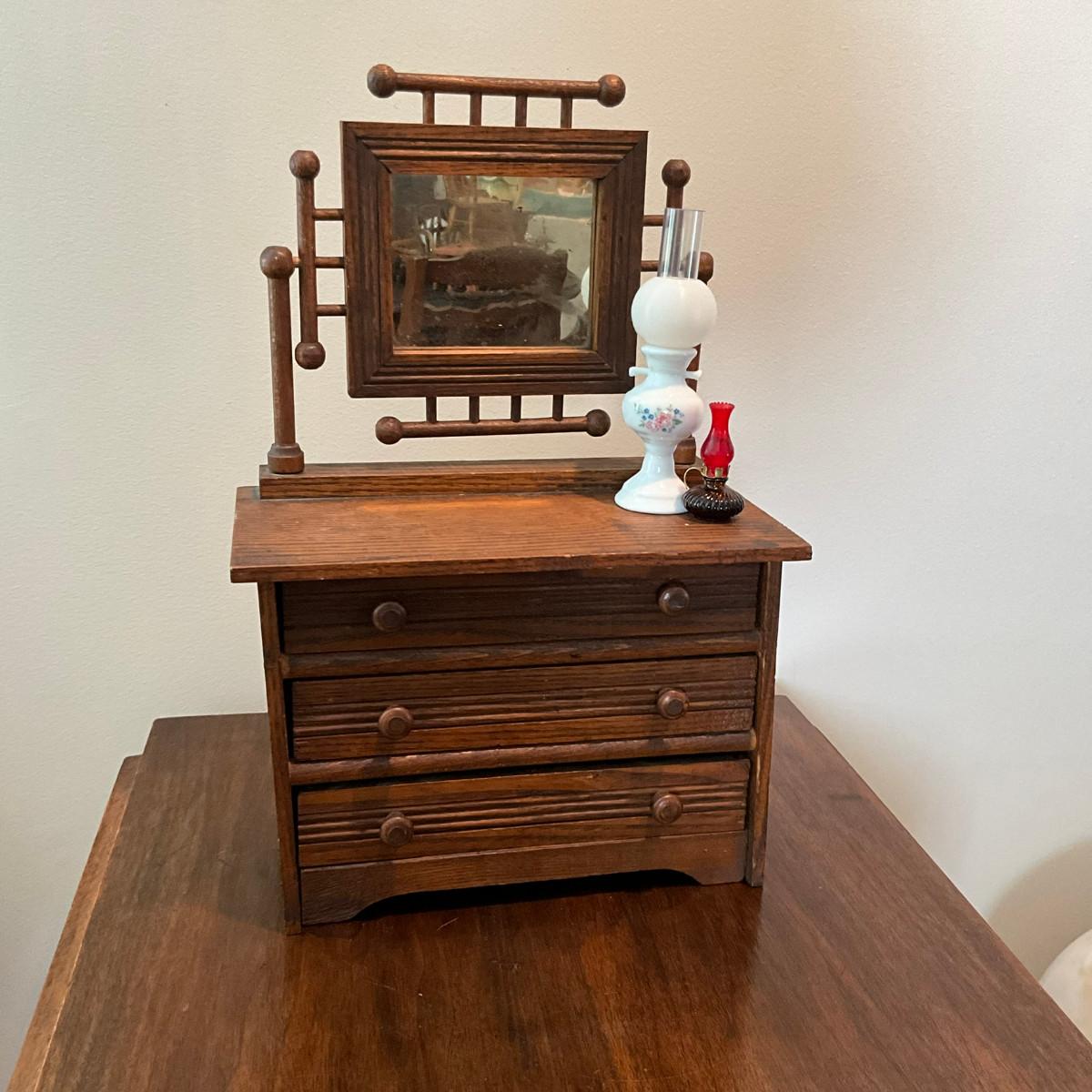 L855 Antique Victorian Salesman Sample Doll Oak Dresser With Mirror
